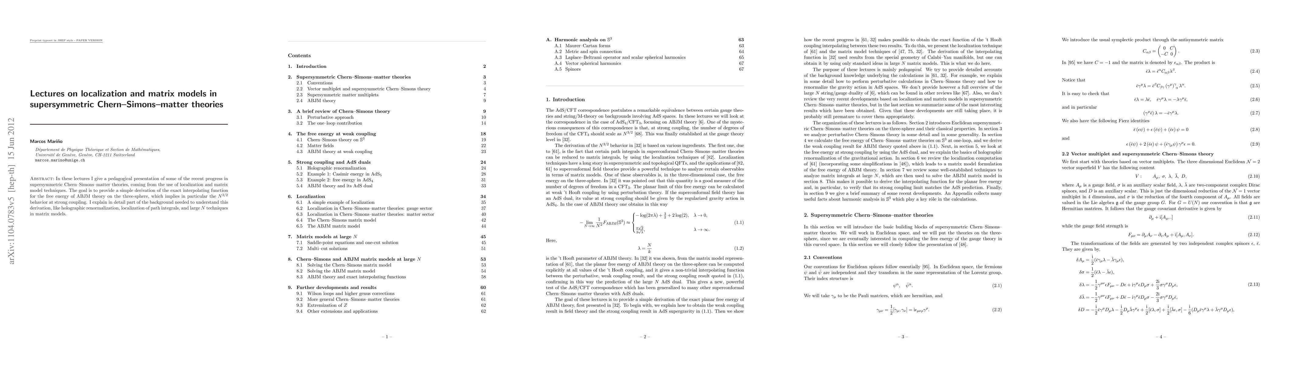 This paper presents a pedagogical overview of recent advancements in supersymmetric Chern-Simons-matter theories, utilizing localization and matrix model techniques. It aims to derive the exact interpolating function for the free energy of ABJM theory on the three-sphere, demonstrating the N^{3/2} behavior at strong coupling.