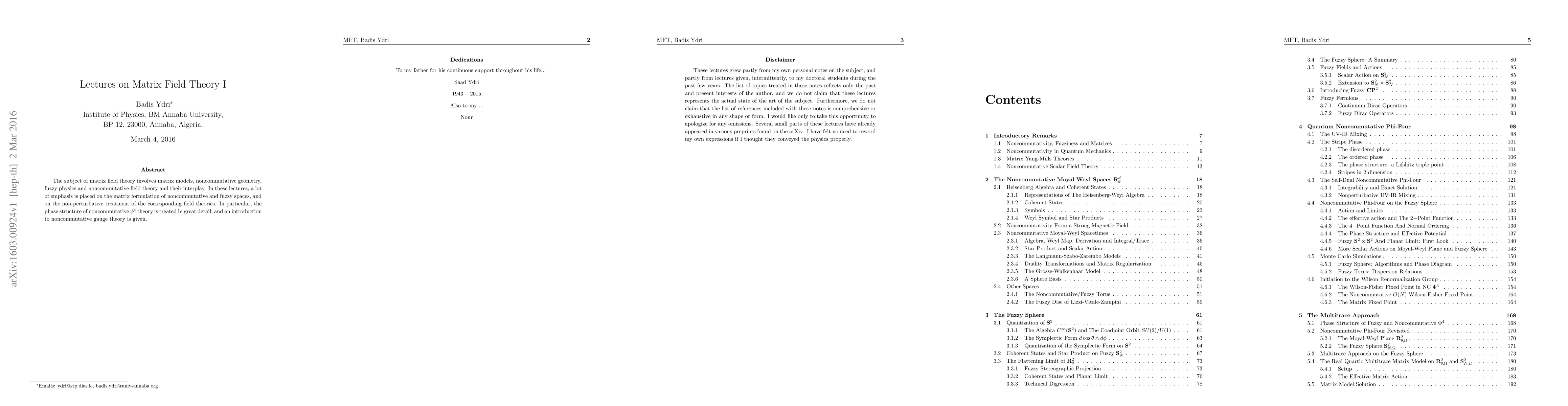 This paper explores matrix field theory, focusing on matrix models and noncommutative geometry, with an emphasis on the matrix formulation of noncommutative spaces and non-perturbative field theories. It delves deeply into the phase structure of noncommutative $\phi^4$ theory and introduces noncommutative gauge theory.