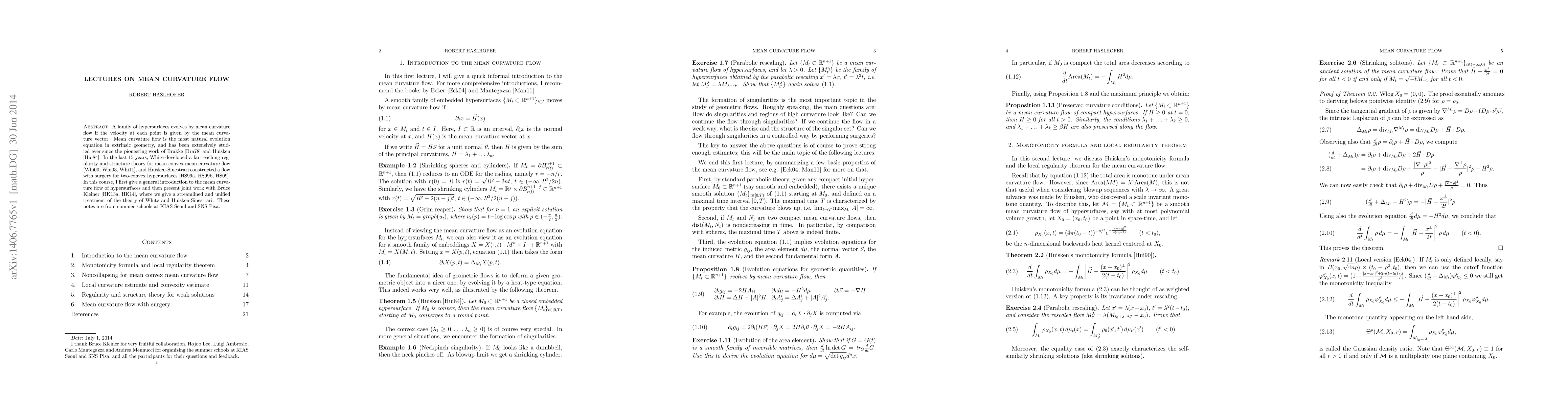 A family of hypersurfaces evolves by mean curvature flow if the velocity at each point is given by the mean curvature vector. Mean curvature flow is the most natural evolution equation in extrinsic geometry, and has been extensively studied ever since the pioneering work of Brakke and Huisken. In the last 15 years, White developed a far-reaching regularity and structure theory for mean convex mean curvature flow, and Huisken-Sinestrari constructed a flow with surgery for two-convex hypersurfaces. In this course, I first give a general introduction to the mean curvature flow of hypersurfaces and then present joint work with Bruce Kleiner, where we give a streamlined and unified treatment of the theory of White and Huisken-Sinestrari. These notes are from summer schools at KIAS Seoul and SNS Pisa.