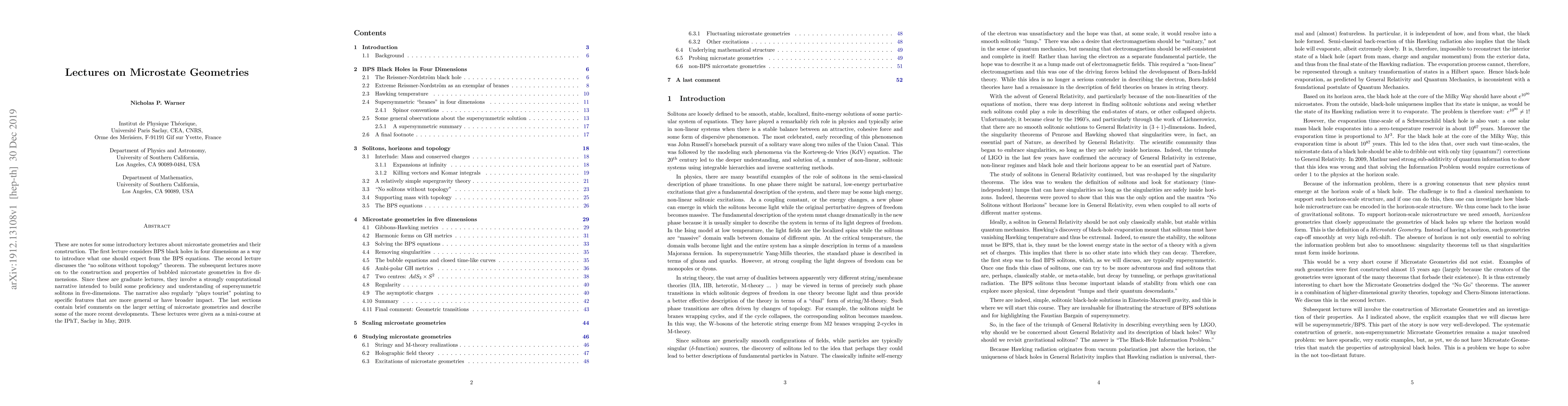 This paper provides an introductory lecture series on microstate geometries, focusing on BPS black holes and the construction of supersymmetric solitons in five dimensions. It highlights the "no solitons without topology" theorem and discusses recent developments in the broader context of microstate geometries.