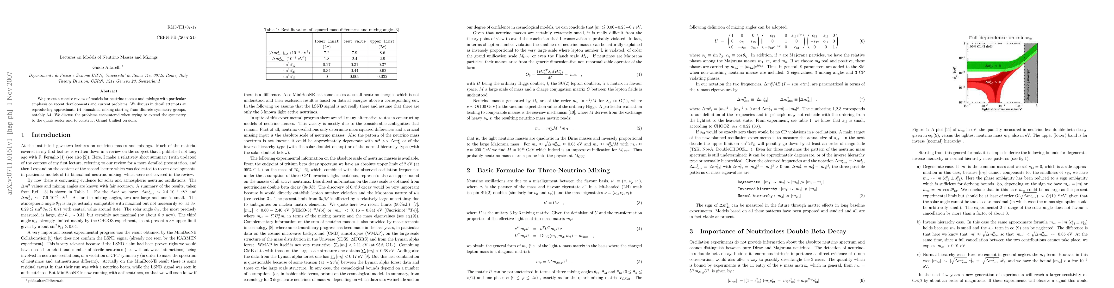 This paper reviews models for neutrino masses and mixing, focusing on recent advancements and challenges, particularly in achieving tri-bimaximal mixing through discrete symmetries like A4. It also addresses difficulties in extending these symmetries to the quark sector and constructing Grand Unified Theories.