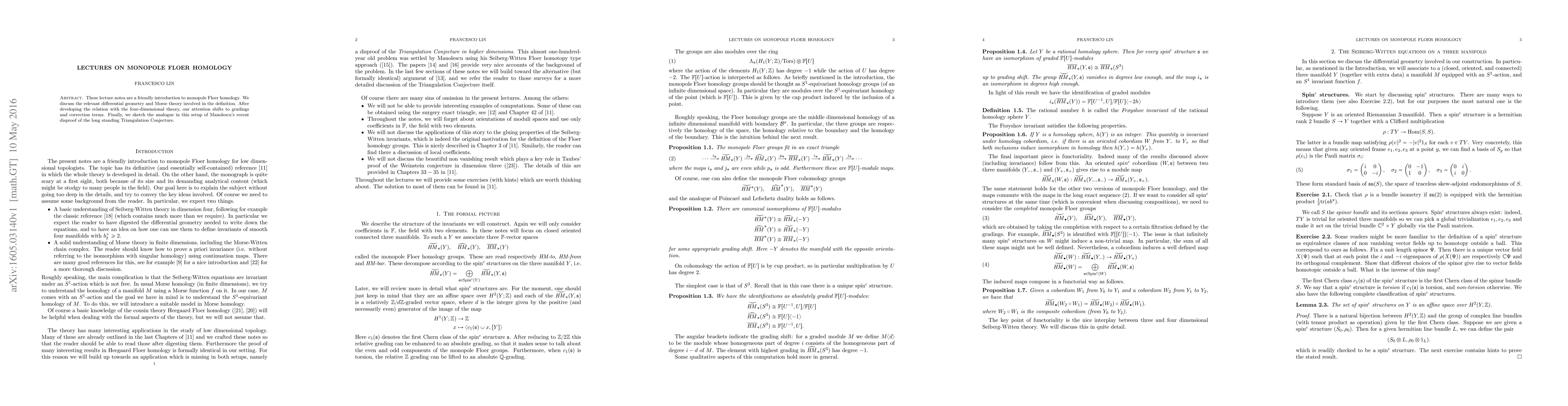 This paper provides an accessible introduction to monopole Floer homology, covering differential geometry, Morse theory, and their connections to four-dimensional theory, while concluding with a discussion on gradings, correction terms, and Manolescu's refutation of the Triangulation Conjecture.