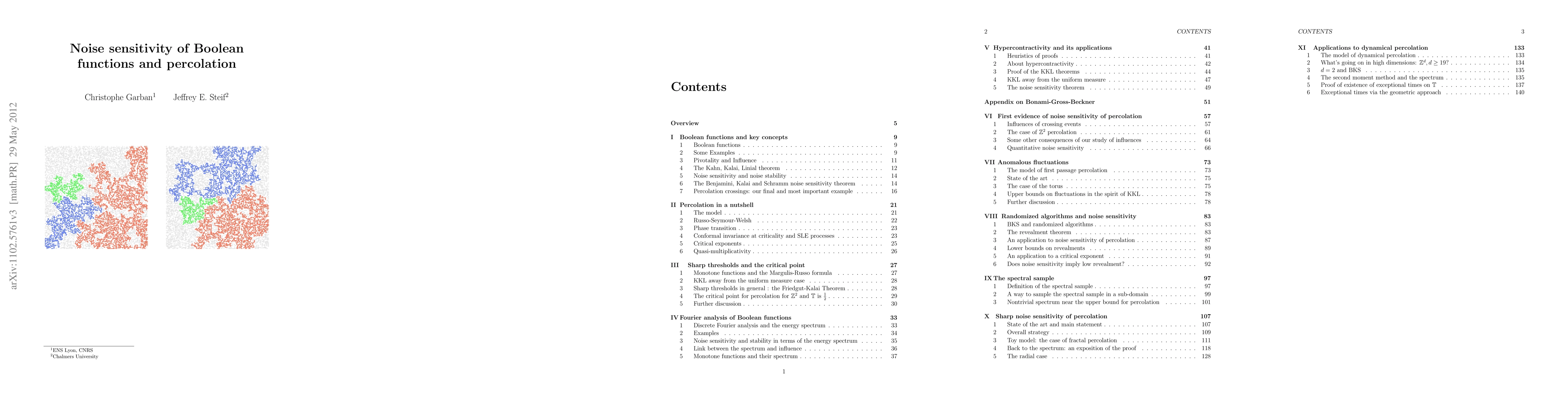 This paper compiles lecture notes from the 2010 Clay Summer School in Buzios, Brazil, focusing on the concepts of noise sensitivity and percolation, offering a comprehensive overview of these topics in probability theory.