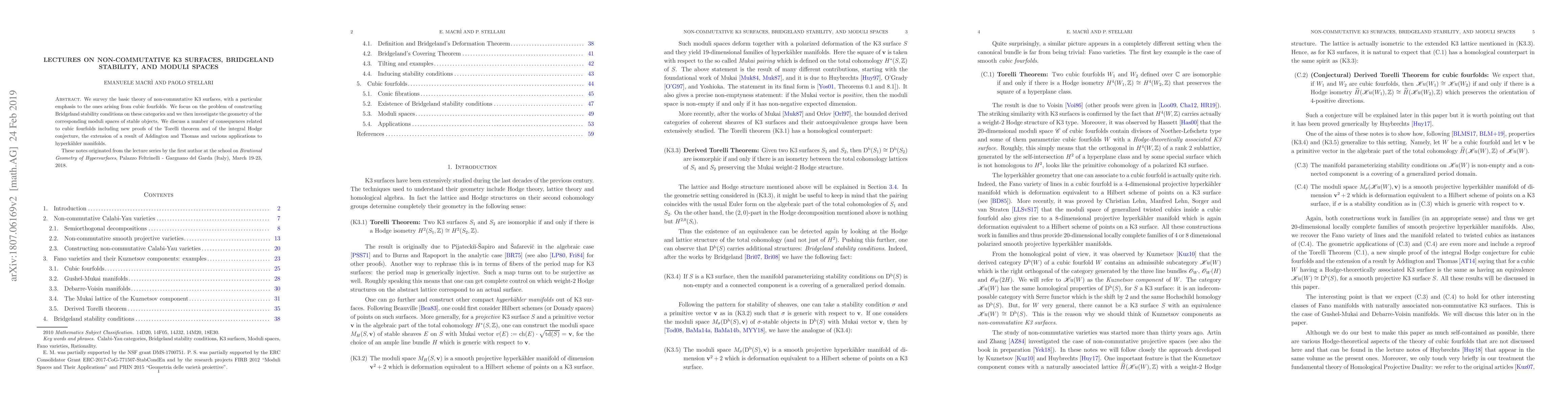 This paper surveys the foundational theory of non-commutative K3 surfaces, with a focus on those derived from cubic fourfolds, and explores Bridgeland stability conditions and the geometry of corresponding moduli spaces. It also discusses implications for the Torelli theorem and Hodge conjecture, alongside applications to hyperkähler manifolds.