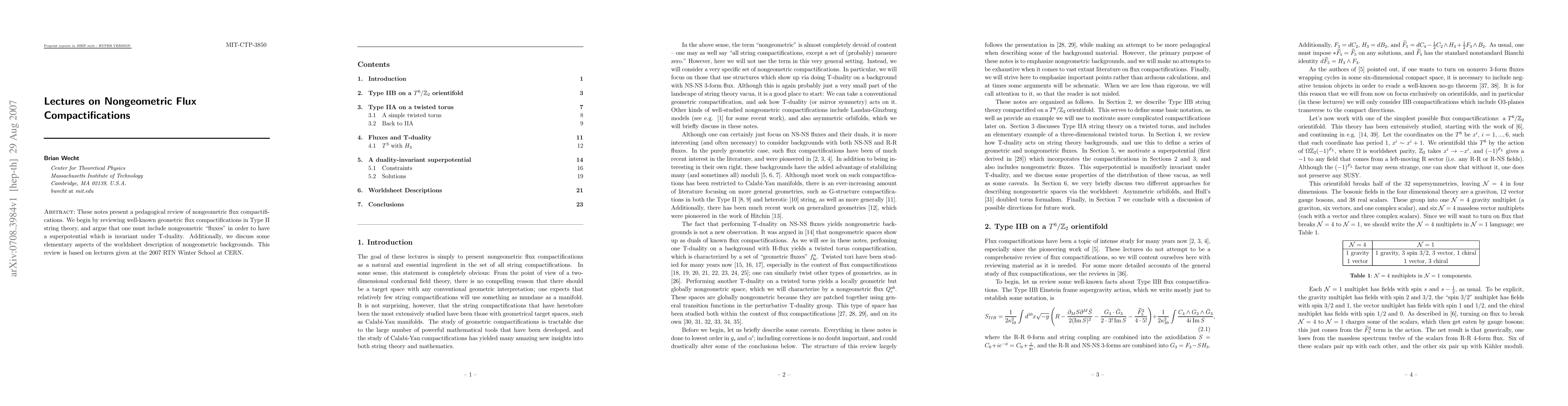 These notes provide a pedagogical review of nongeometric flux compactifications in Type II string theory, highlighting the necessity of including nongeometric fluxes for T-duality invariance, and touch upon their worldsheet descriptions. Based on lectures from the 2007 RTN Winter School at CERN.