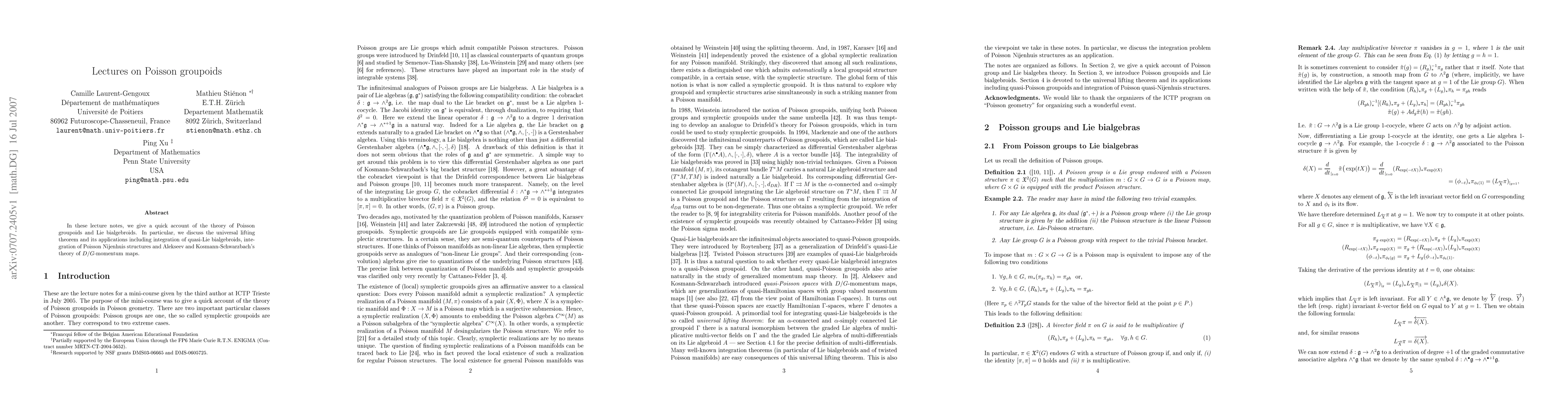 In these lecture notes, we give a quick account of the theory of Poisson groupoids and Lie bialgebroids. In particular, we discuss the universal lifting theorem and its applications including integration of quasi-Lie bialgebroids, integration of Poisson Nijenhuis structures and Alekseev and Kosmann-Schwarzbach's theory of D/G-momentum maps.