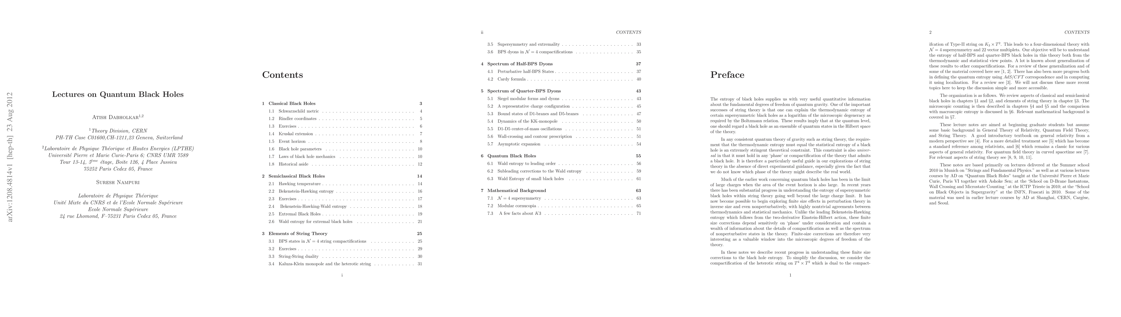 In these notes we describe recent progress in understanding finite size corrections to the black hole entropy. Much of the earlier work concerning quantum black holes has been in the limit of large charges when the area of the even horizon is also large. In recent years there has been substantial progress in understanding the entropy of supersymmetric black holes within string theory going well beyond the large charge limit. It has now become possible to begin exploring finite size effects in perturbation theory in inverse size and even nonperturbatively, with highly nontrivial agreements between thermodynamics and statistical mechanics. Unlike the leading Bekenstein-Hawking entropy which follows from the two-derivative Einstein-Hilbert action, these finite size corrections depend sensitively on the phase under consideration and contain a wealth of information about the details of compactification as well as the spectrum of nonperturbative states in the theory. Finite-size corrections are therefore very interesting as a valuable window into the microscopic degrees of freedom of the quantum theory.