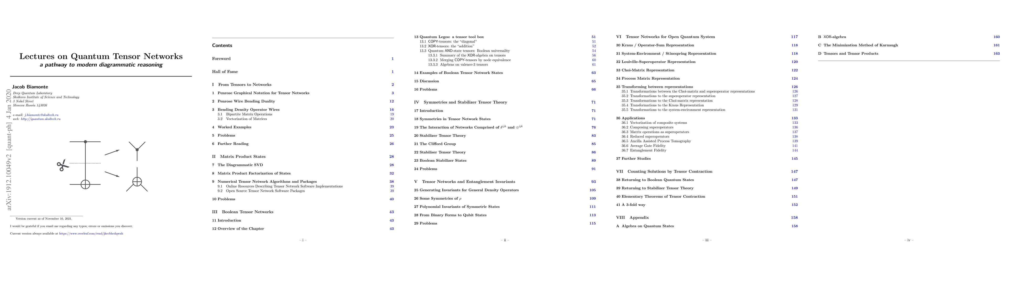 This book presents contemporary practices in tensor network theory, a language that combines computer science, quantum physics, and mathematics to reason about quantum states and processes. It covers foundational concepts and applications like matrix product states, open quantum systems, and entanglement, making it accessible to researchers and graduate students interested in quantum information science.