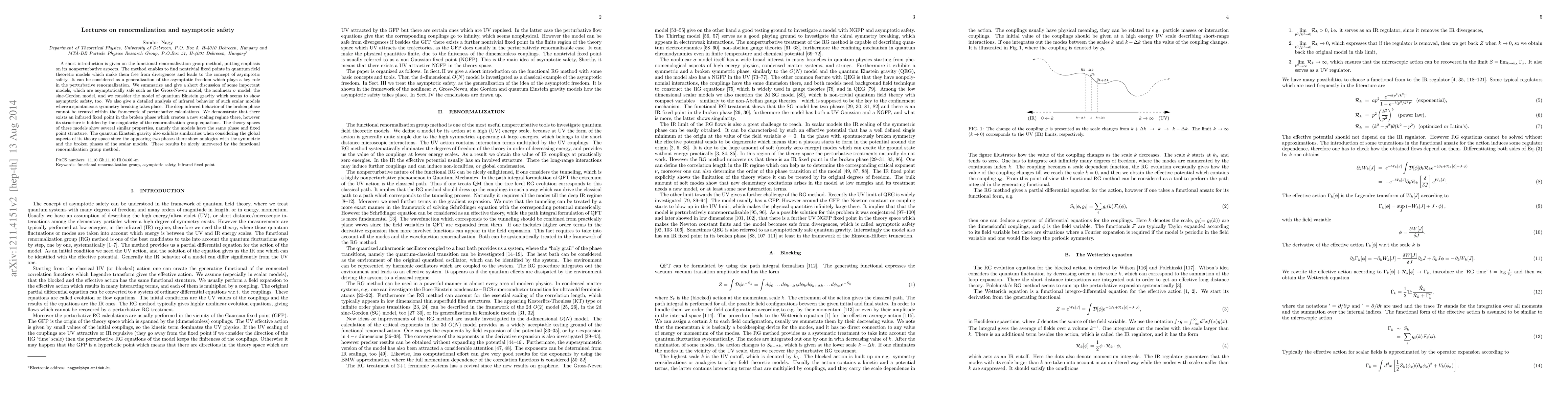 This paper introduces the functional renormalization group method, focusing on its nonperturbative aspects and its role in identifying nontrivial fixed points that lead to asymptotic safety in quantum field theories. It discusses several asymptotically safe models, including the Gross-Neveu, nonlinear $\sigma$, sine-Gordon models, and quantum Einstein gravity, highlighting their similar phase and fixed point structures.