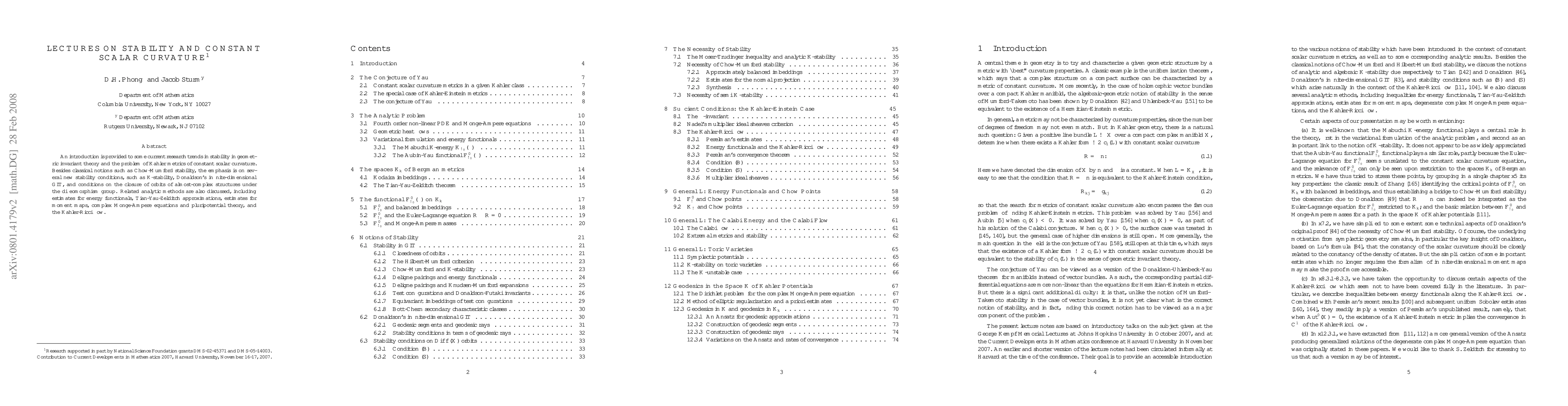 An introduction is provided to some current research trends in stability in geometric invariant theory and the problem of Kaehler metrics of constant scalar curvature. Besides classical notions such as Chow-Mumford stability, the emphasis is on several new stability conditions, such as K-stability, Donaldson's infinite-dimensional GIT, and conditions on the closure of orbits of almost-complex structures under the diffeomorphism group. Related analytic methods are also discussed, including estimates for energy functionals, Tian-Yau-Zelditch approximations, estimates for moment maps, complex Monge-Ampere equations and pluripotential theory, and the Kaehler-Ricci flow