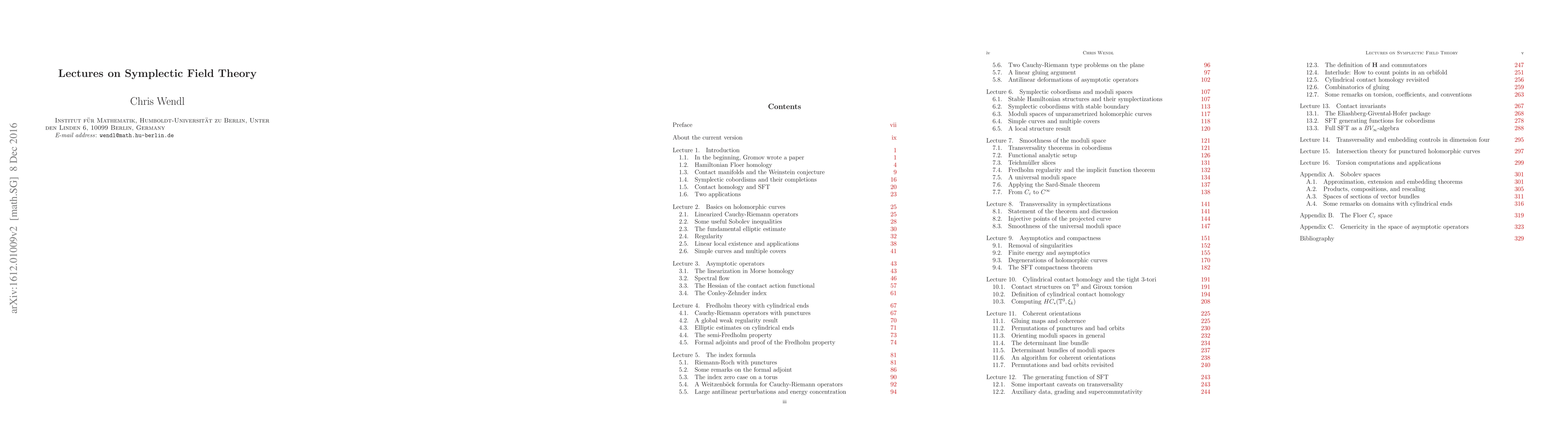 This is the preliminary manuscript of a book on symplectic field theory based on a lecture course for PhD students given in 2015-16. It covers the essentials of the analytical theory of punctured pseudoholomorphic curves, taking the opportunity to fill in gaps in the existing literature where necessary, and then gives detailed explanations of a few of the standard applications in contact topology such as distinguishing contact structures up to contactomorphism and proving symplectic non-fillability.
