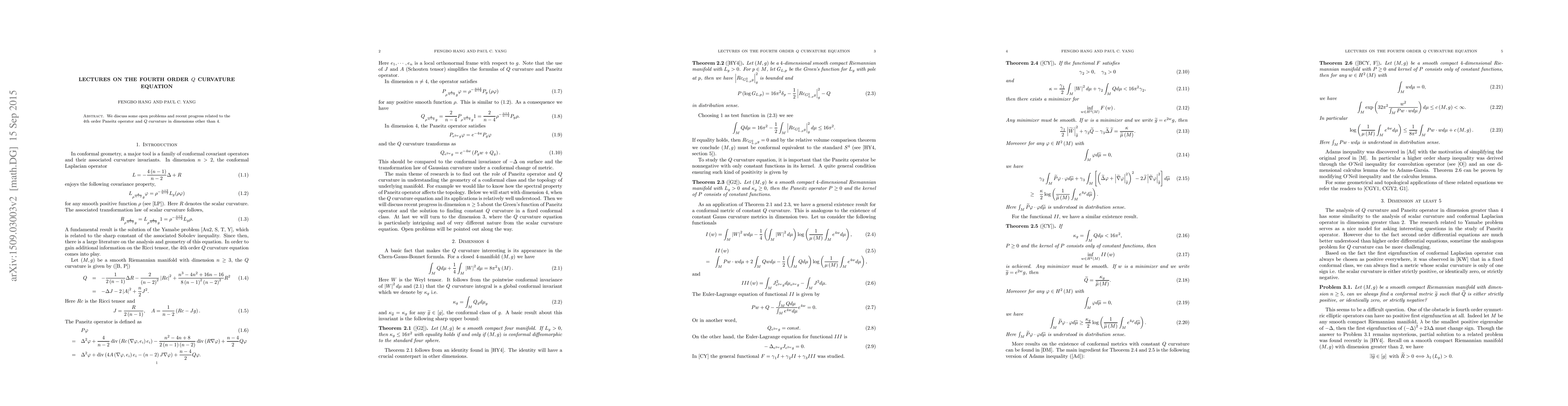 We discuss some open problems and recent progress related to the 4th order Paneitz operator and Q curvature in dimensions other than 4.