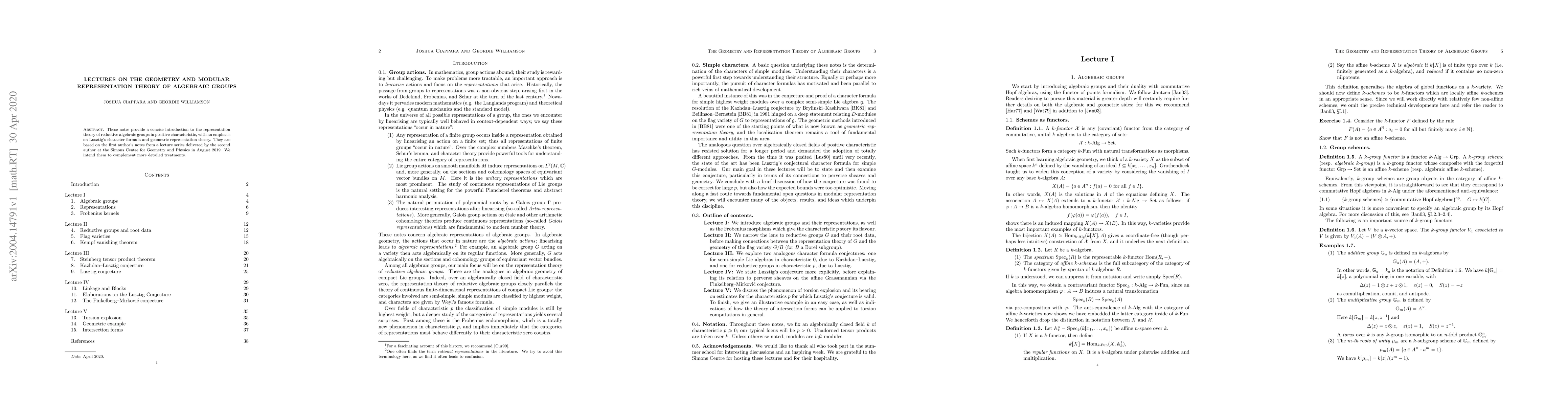 This paper offers a brief introduction to the representation theory of reductive algebraic groups in positive characteristic, focusing on Lusztig's character formula and geometric representation theory, based on lecture notes from a series at the Simons Centre for Geometry and Physics in 2019. It aims to complement more comprehensive treatments of the subject.