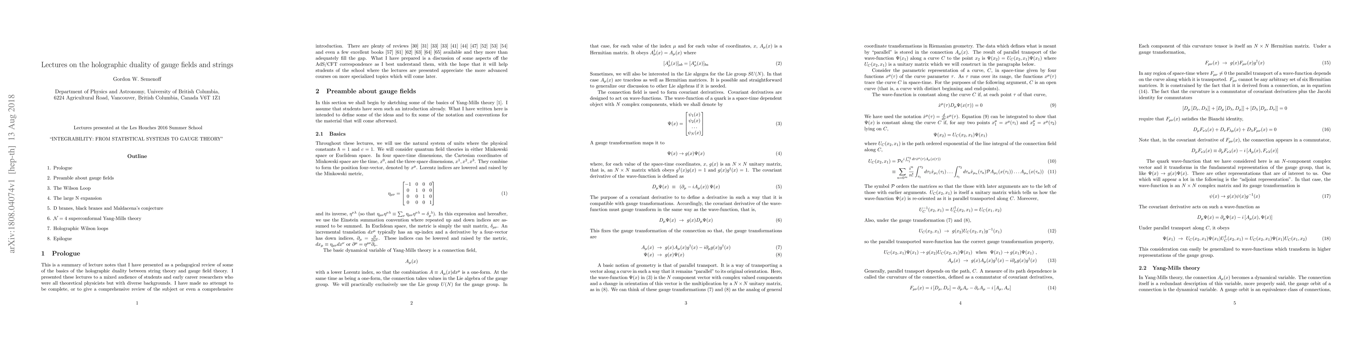 Summary: This lecture series explores the holographic duality, a profound connection between gauge theories and string theory, presented at the Les Houches 2016 Summer School. The discussions delve into the implications and applications of this duality in modern theoretical physics.