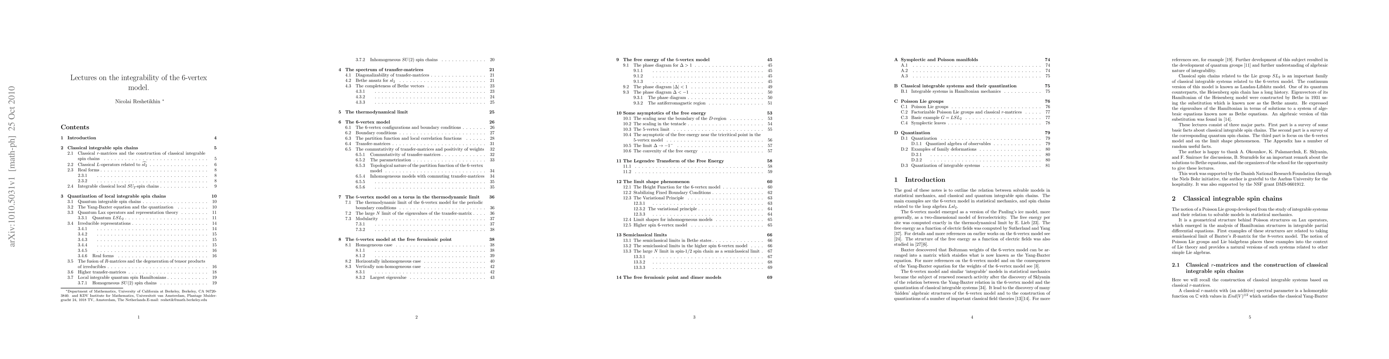 Summary: This paper provides an overview of the integrability aspects of the 6-vertex model in statistical mechanics, exploring its connections to related models and highlighting its mathematical and physical significance.
