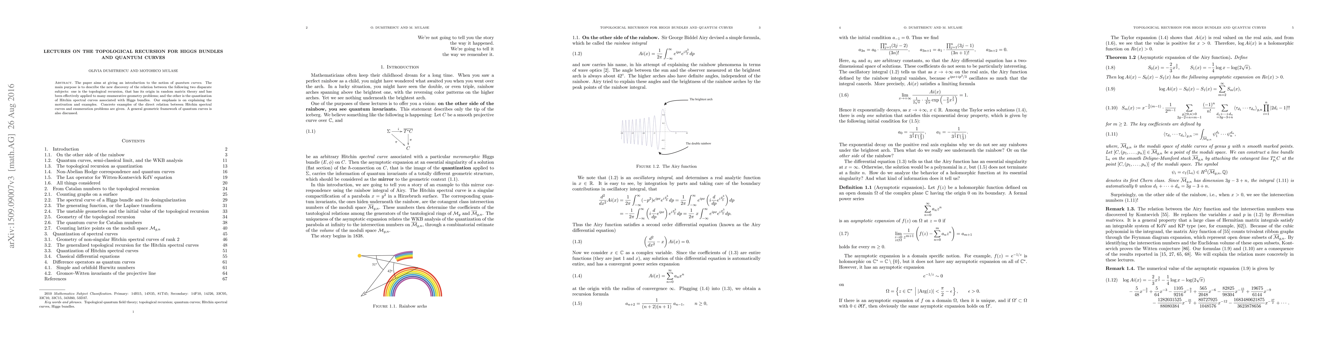 This paper introduces quantum curves and explores their connection to topological recursion, linking random matrix theory and enumerative geometry with the quantization of Hitchin spectral curves from Higgs bundles. It provides examples illustrating the direct relation between these concepts and discusses a general geometric framework for quantum curves.