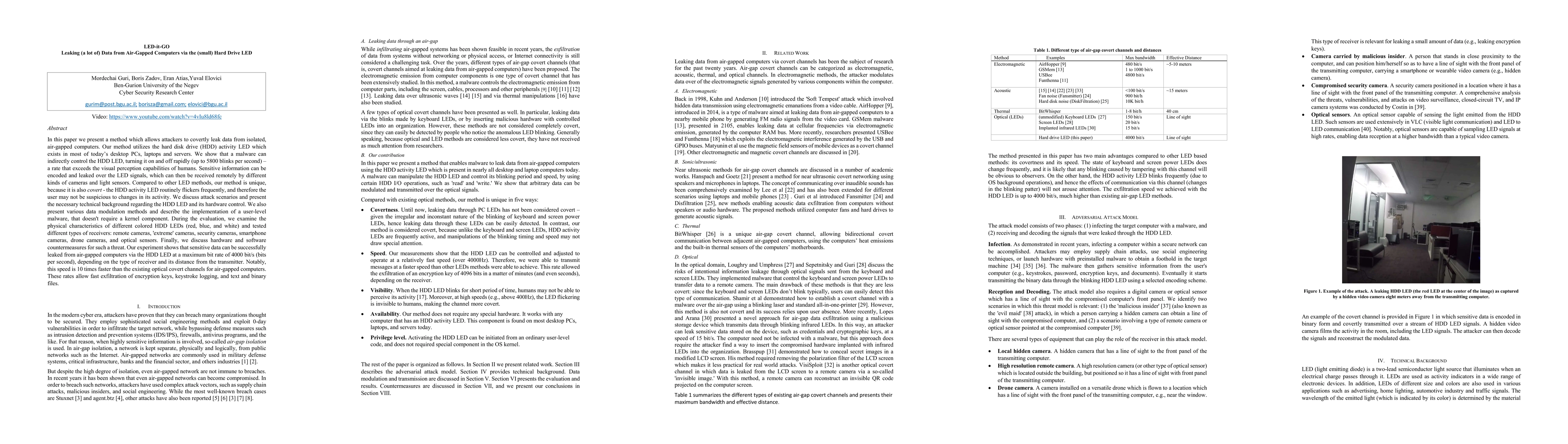 This paper presents a covert method for leaking data from air-gapped computers using the hard disk drive's LED, which can rapidly blink beyond human perception to encode and transmit sensitive information. The study evaluates various receivers and demonstrates a maximum bit rate of 4000 bits per second, significantly faster than existing optical covert channels.
