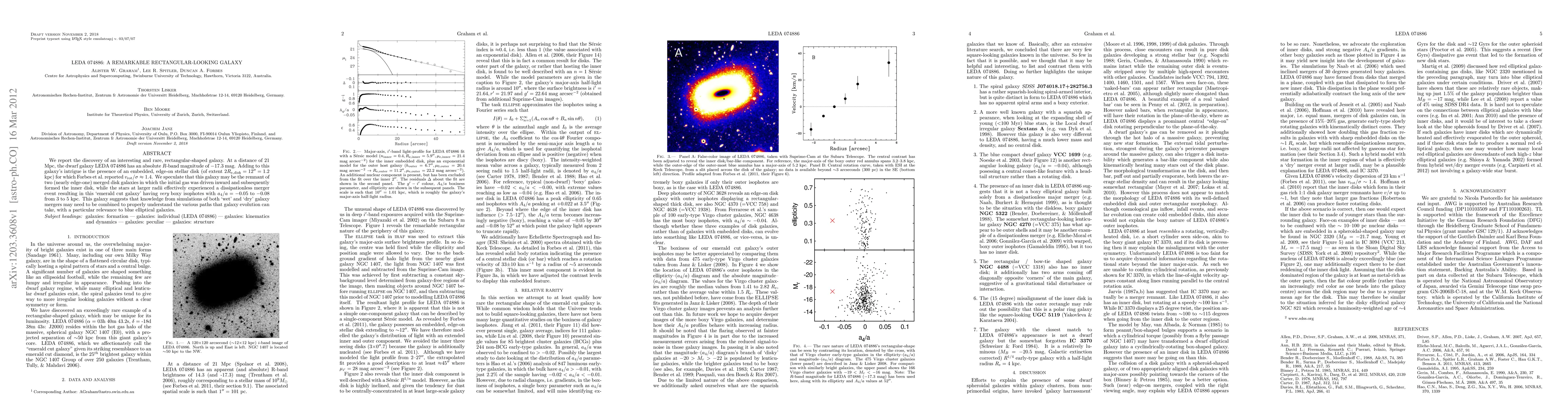 We report the discovery of an interesting and rare, rectangular-shaped galaxy. At a distance of 21 Mpc, the dwarf galaxy LEDA 074886 has an absolute R-band magnitude of -17.3 mag. Adding to this galaxy's intrigue is the presence of an embedded, edge-on stellar disk (of extent 2R_{e,disk} = 12 arcsec = 1.2 kpc) for which Forbes et al. reported V_rot/sigma ~ 1.4. We speculate that this galaxy may be the remnant of two (nearly edge-one) merged disk galaxies in which the initial gas was driven inward and subsequently formed the inner disk, while the stars at larger radii effectively experienced a dissipationless merger event resulting in this `emerald cut galaxy' having very boxy isophotes with a_4/a = -0.05 to -0.08 from 3 to 5 kpc. This galaxy suggests that knowledge from simulations of both `wet' and `dry' galaxy mergers may need to be combined to properly understand the various paths that galaxy evolution can take, with a particular relevance to blue elliptical galaxies.