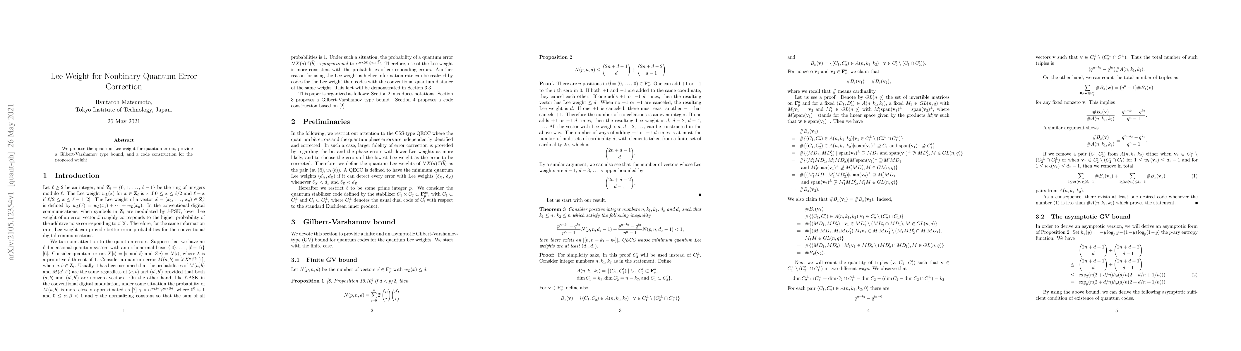 Researchers proposed a new measure called the quantum Lee weight to correct errors in nonbinary quantum systems, providing a bound on error correction capabilities and a method for code construction.