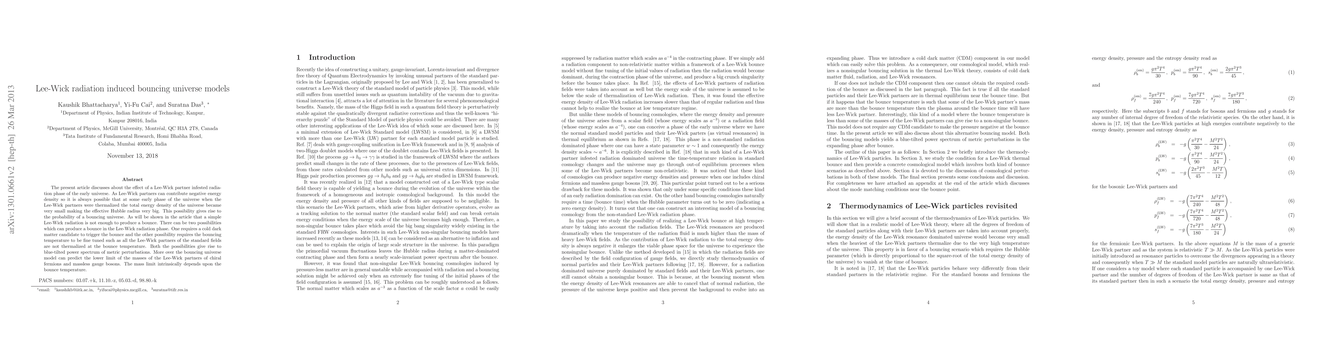 This paper explores the implications of Lee-Wick partner-infested radiation in the early universe, suggesting that such radiation could lead to a bouncing universe model due to its negative energy density. The study finds that while simple Lee-Wick radiation alone isn't sufficient for a bounce, two scenarios can achieve it: through a cold dark matter trigger or fine-tuned bouncing temperatures, both yielding a blue-tilted power spectrum of metric perturbations.