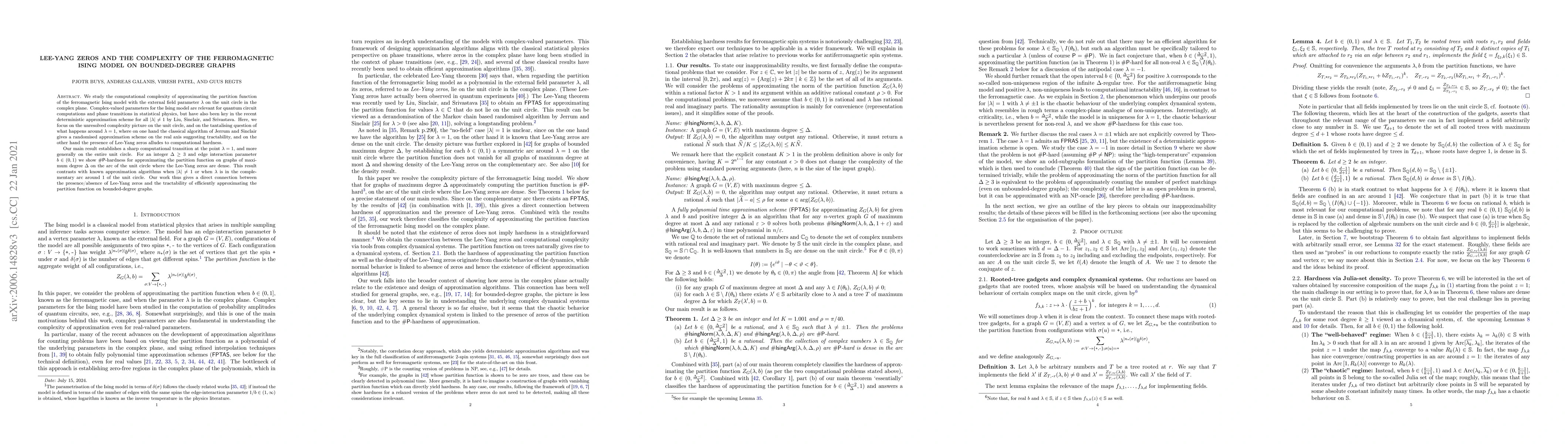 This paper investigates the computational complexity of approximating the partition function of the ferromagnetic Ising model on bounded-degree graphs, focusing on the unit circle in the complex plane. The authors establish #P-hardness for approximating the partition function when Lee-Yang zeros are dense, revealing a sharp computational transition at $\lambda=1$.