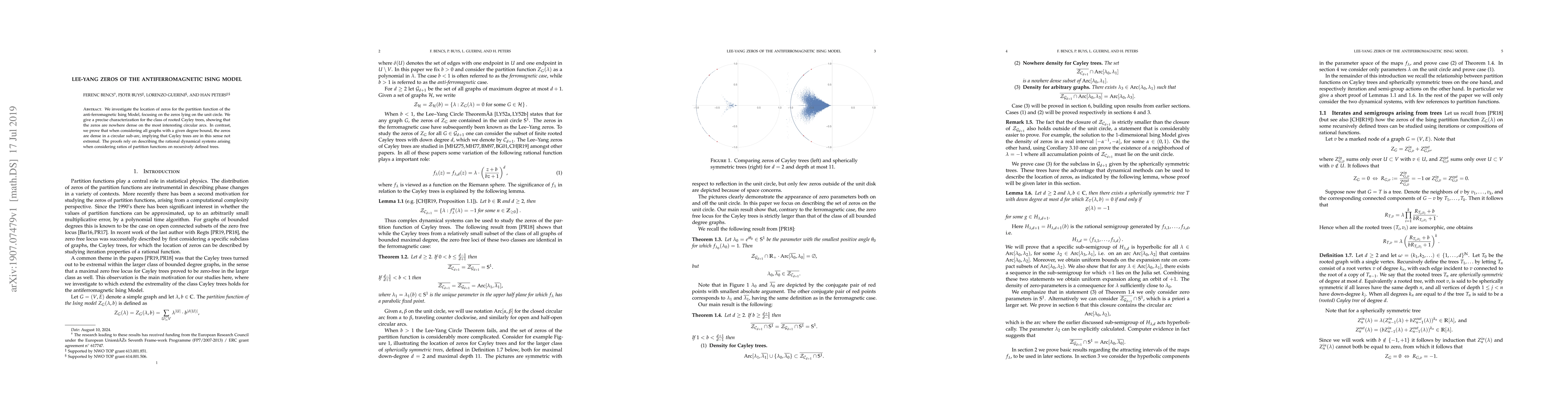 The research paper analyzes the Lee-Yang zeros of the antiferromagnetic Ising Model, revealing that for Cayley trees, these zeros are nowhere dense on significant circular arcs, while for graphs with a degree bound, they are dense in a circular sub-arc. The study employs rational dynamical systems to describe partition function ratios on recursively defined trees.