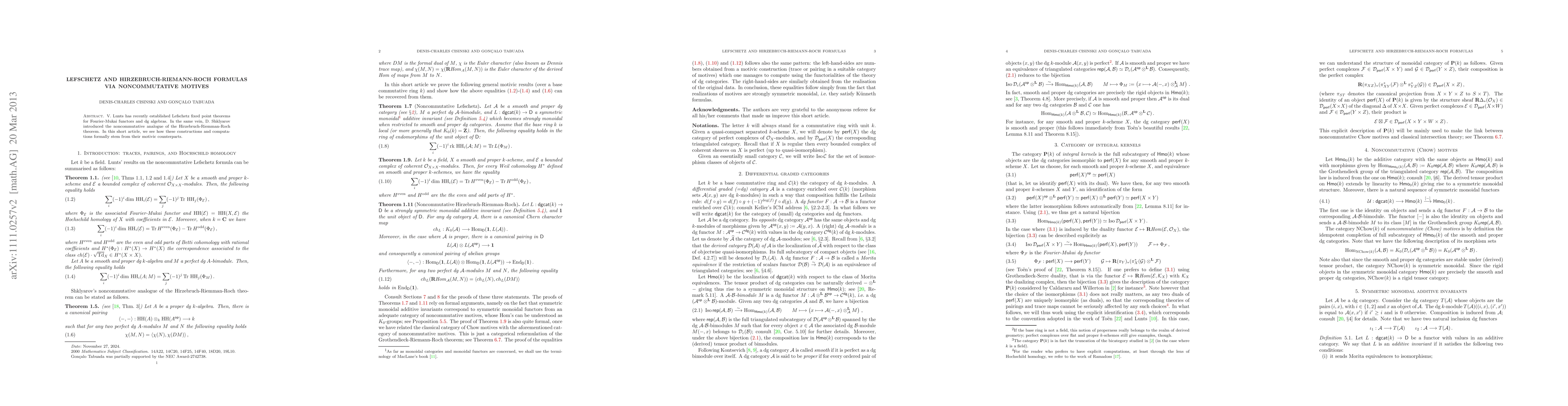 V. Lunts has recently established Lefschetz fixed point theorems for Fourier-Mukai functors and dg algebras. In the same vein, D. Shklyarov introduced the noncommutative analogue of the Hirzebruch-Riemann-Roch theorem. In this short article, we see how these constructions and computations formally stem from their motivic counterparts.