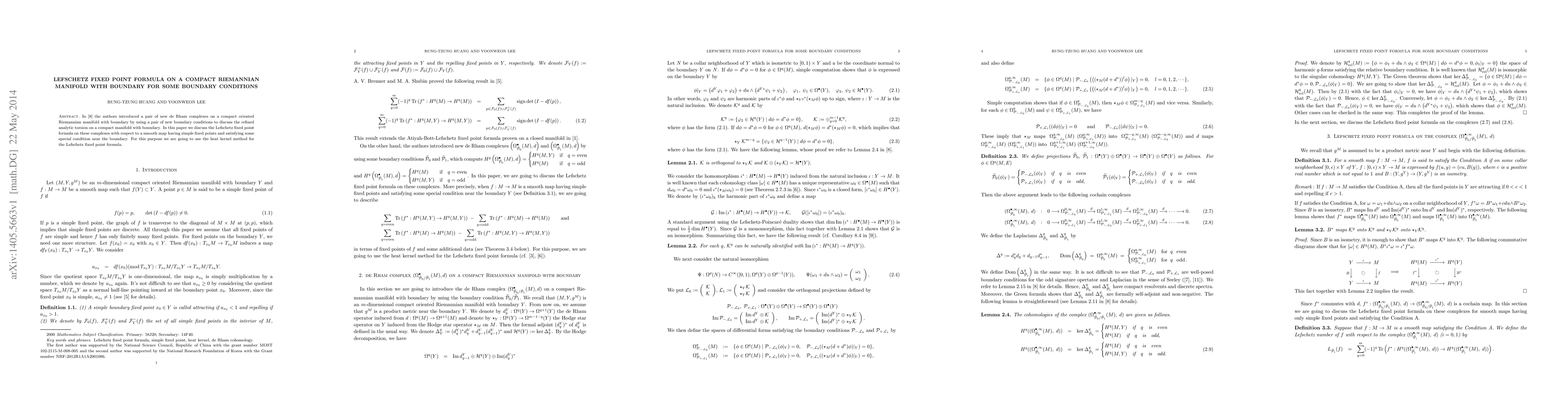 This paper extends the Lefschetz fixed point formula to compact Riemannian manifolds with boundary under specific boundary conditions, utilizing the heat kernel method for analysis. The study builds on previous work introducing new de Rham complexes for refined analytic torsion discussions.