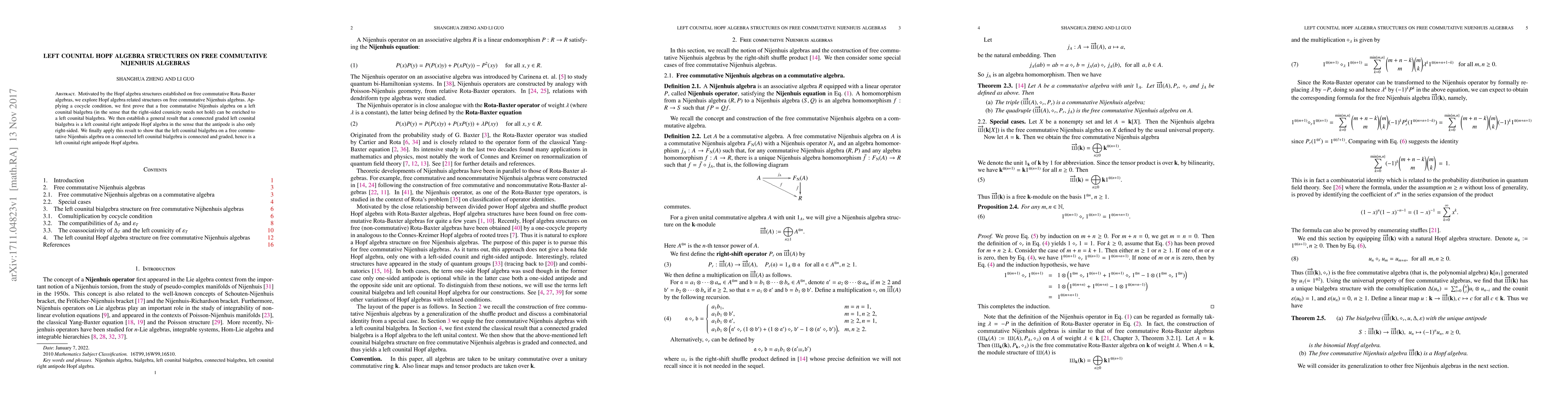 This paper investigates Hopf algebra structures on free commutative Nijenhuis algebras, demonstrating that they can be enriched to left counital bialgebras under a cocycle condition. It further proves that such bialgebras are left counital right antipode Hopf algebras when connected and graded.