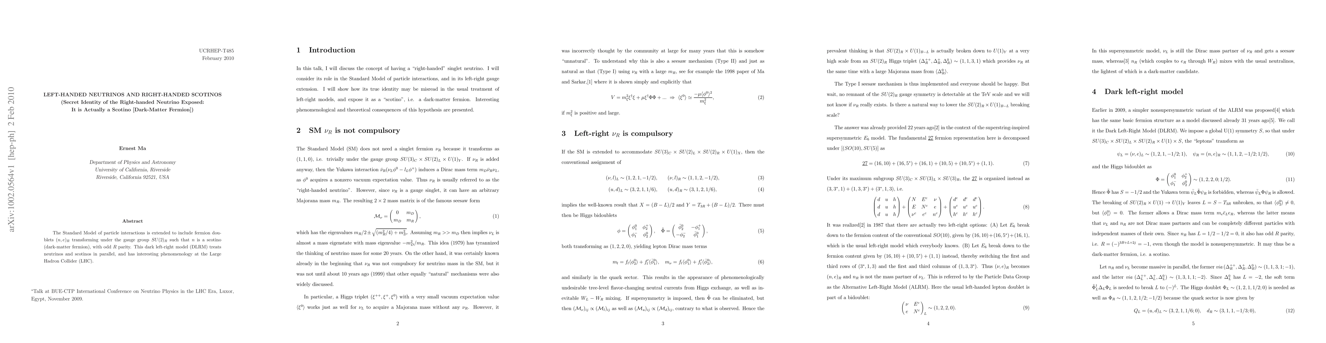 A new particle model extends the Standard Model to include left-handed neutrinos and right-handed scotinos, which could be detected at the Large Hadron Collider.