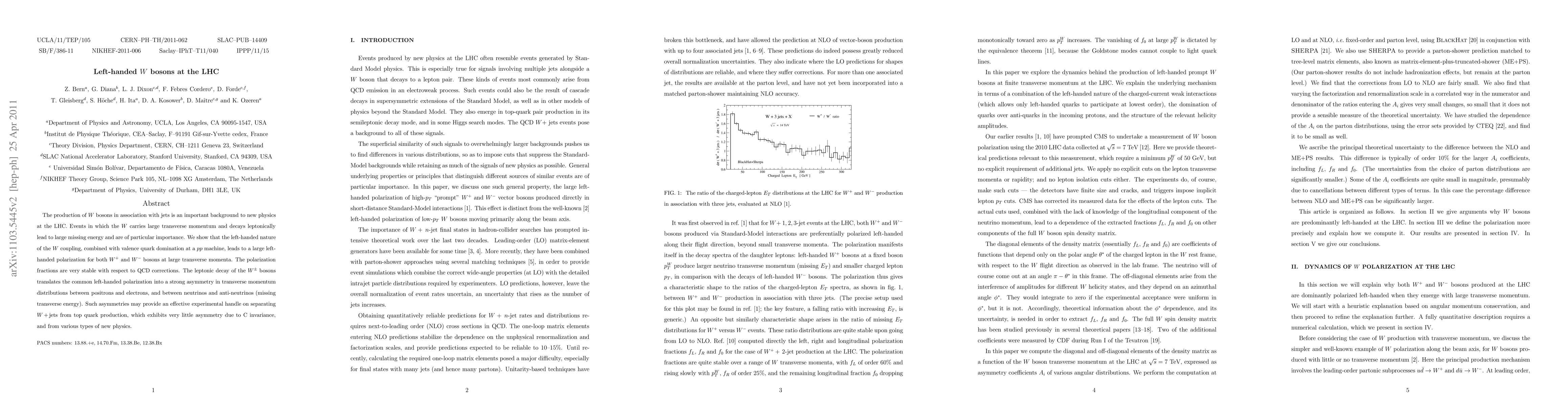 The LHC experiment finds large left-handed polarization in W bosons at high transverse momentum due to valence quark domination, providing a tool to distinguish between W+jets and top quark production.