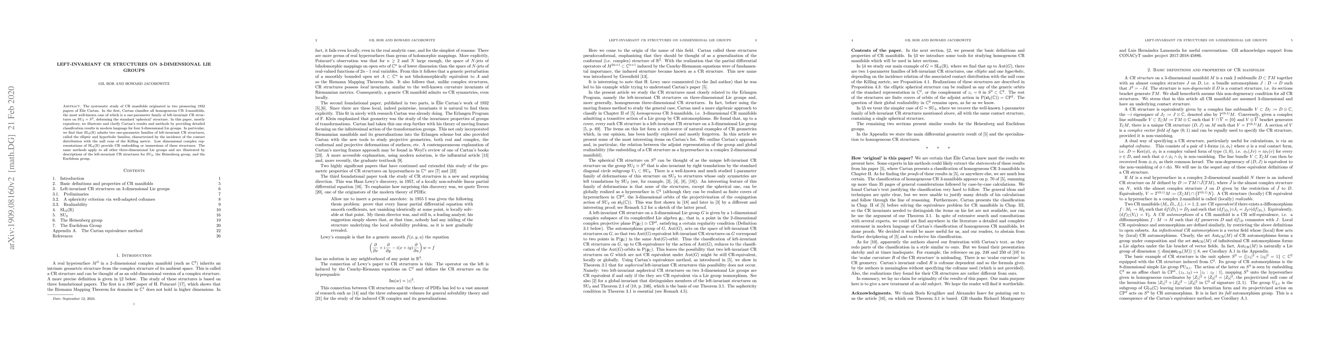 The systematic study of CR manifolds originated in two pioneering 1932 papers of \'Elie Cartan. In the first, Cartan classifies all homogeneous CR 3-manifolds, the most well-known case of which is a one-parameter family of left-invariant CR structures on $\mathrm{SU}_2 = S^3$, deforming the standard `spherical' structure. In this paper, mostly expository, we illustrate and clarify Cartan's results and methods by providing detailed classification results in modern language for four 3-dimensional Lie groups. In particular, we find that $\mathrm{SL}_2(\mathbb{R})$ admits two one-parameter families of left-invariant CR structures, called the elliptic and hyperbolic families, characterized by the incidence of the contact distribution with the null cone of the Killing metric. Low dimensional complex representations of $\mathrm{SL}_2(\mathbb{R})$ provide CR embedding or immersions of these structures. The same methods apply to all other three-dimensional Lie groups and are illustrated by descriptions of the left-invariant CR structures for $\mathrm{SU}_2$, the Heisenberg group, and the Euclidean group.