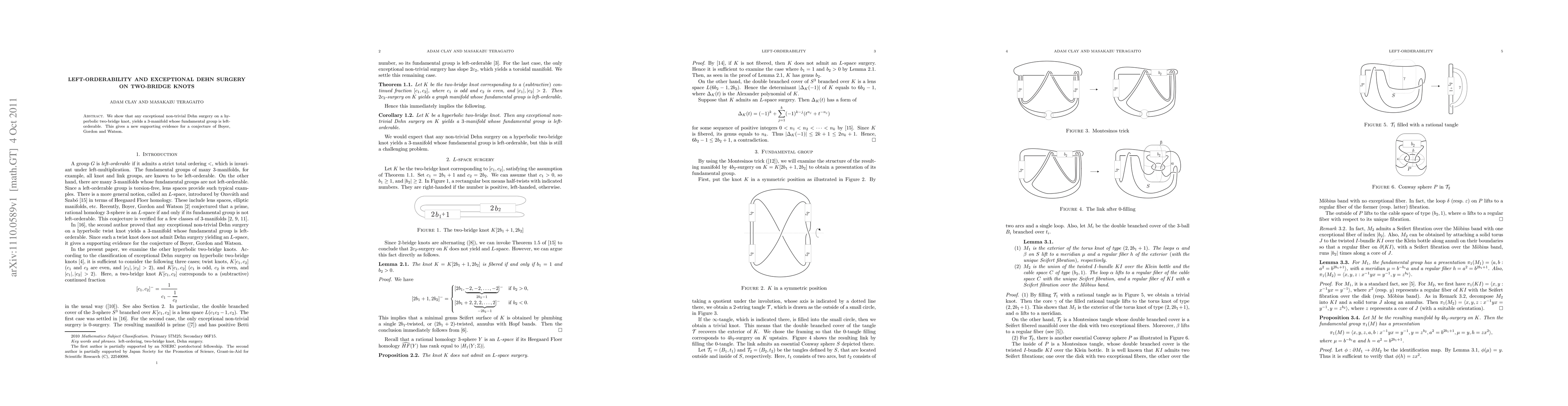 A new study shows that Dehn surgery on certain knots results in manifolds with left-orderable fundamental groups, supporting a long-standing conjecture.