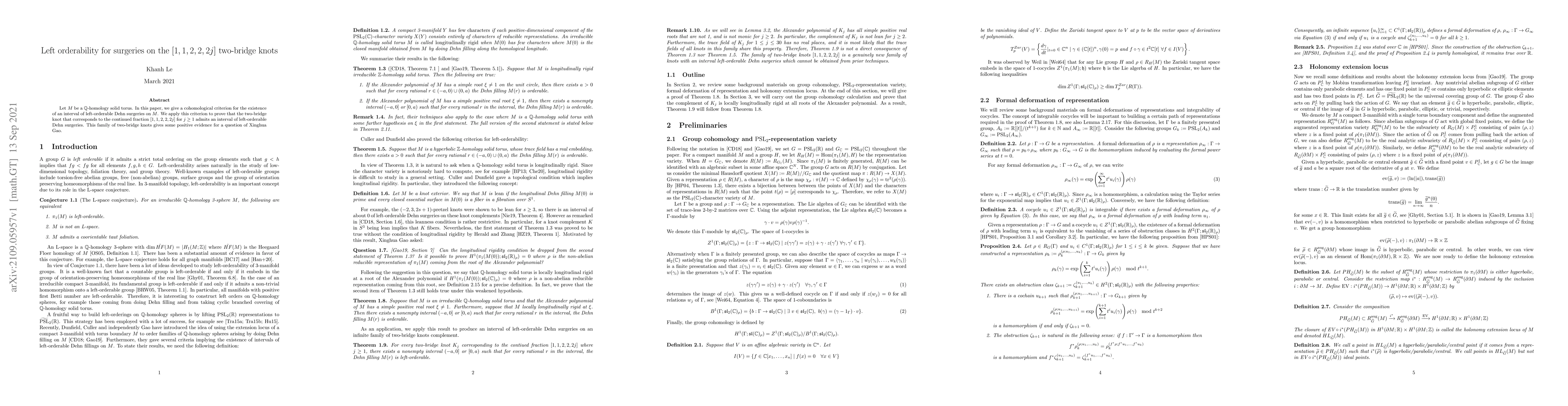 Researchers prove that a specific family of two-bridge knots can undergo an interval of left-orderable Dehn surgeries, providing positive evidence for a related question in knot theory.