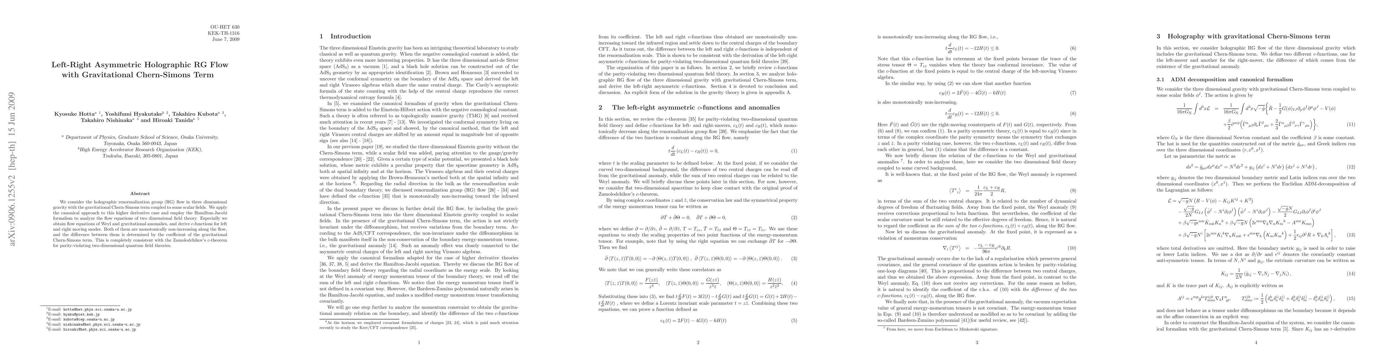 This paper studies a holographic RG flow in three-dimensional gravity with a gravitational Chern-Simons term, deriving flow equations for Weyl and gravitational anomalies. The $c$-functions for left and right modes are found to be monotonically non-increasing, consistent with the $c$-theorem for parity-violating quantum field theories.