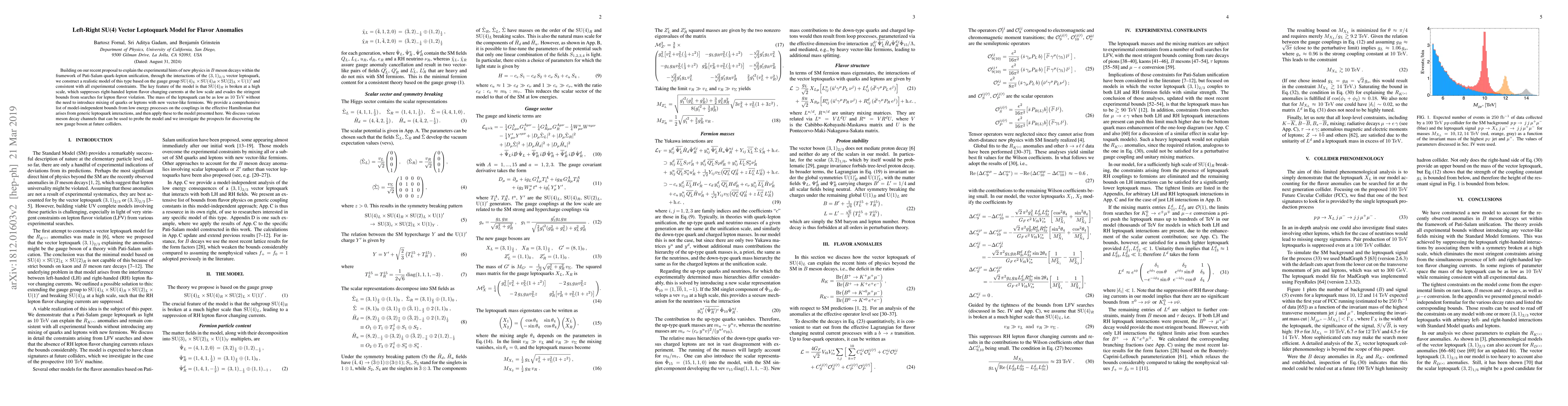 This research proposes a Left-Right SU(4) vector leptoquark model to explain anomalies in B meson decays, consistent with Pati-Salam quark-lepton unification. The model suppresses right-handed lepton flavor violation by breaking SU(4)_R at a high scale, allowing a low-mass leptoquark (up to 10 TeV) without mixing quarks or leptons with new fermions. It also presents bounds from low energy processes and discusses prospects for discovery at future colliders.