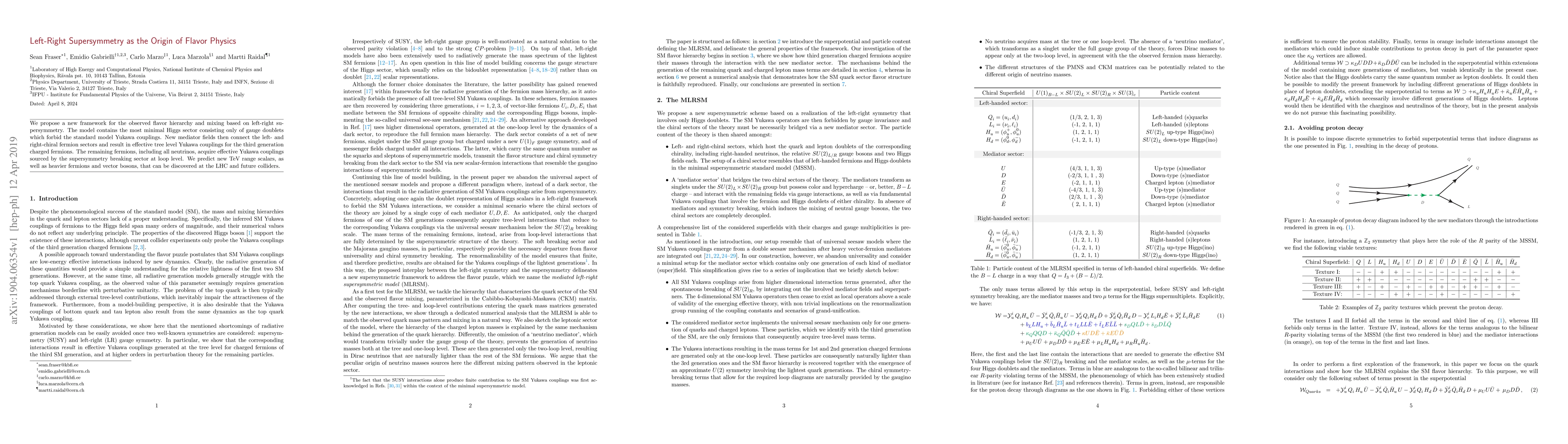 This research proposes a minimal supersymmetric framework to explain the flavor hierarchy and mixing through left-right symmetry, where mediator fields generate Yukawa couplings and predict new scalars and fermions detectable at high-energy colliders like the LHC.