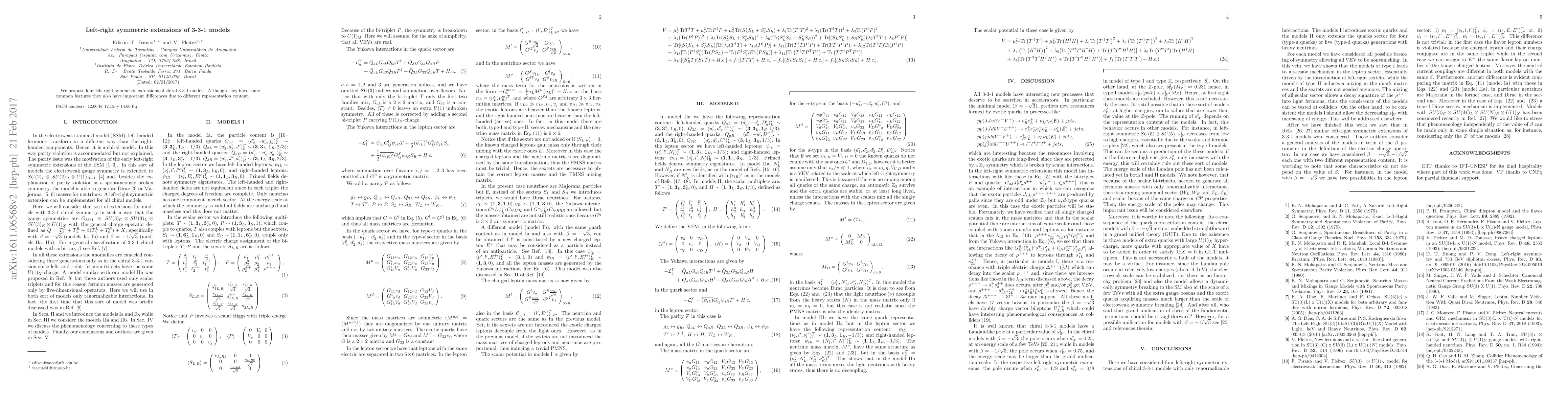We propose four left-right symmetric extensions of several chiral 3-3-1 models. Although they have some common features they also have important difference due to different representation content.