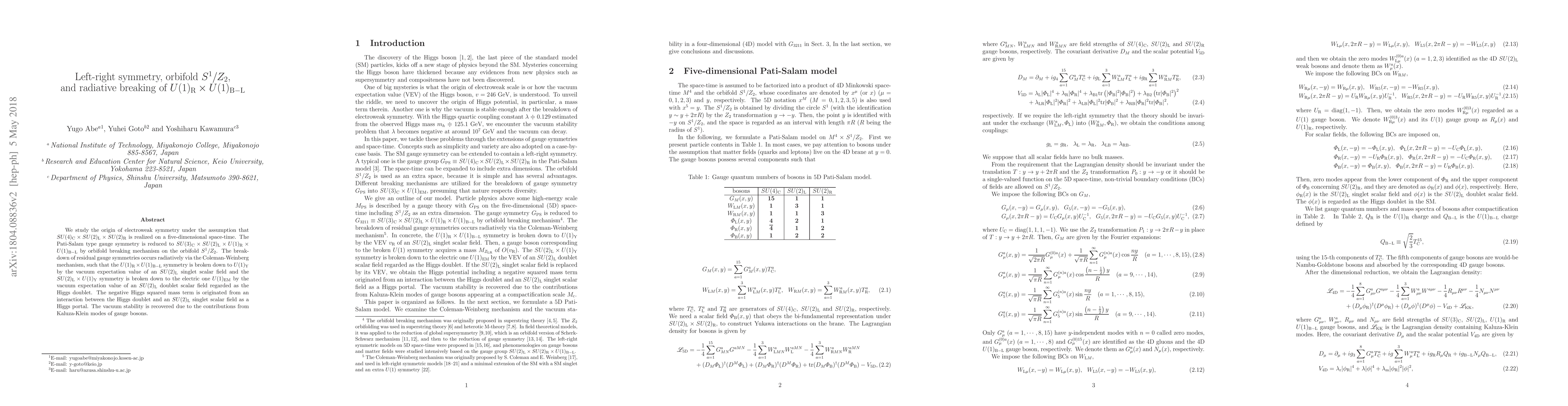 This paper explores the electroweak symmetry breaking in a five-dimensional space-time framework, where the Pati-Salam gauge symmetry is reduced via an orbifold $S^1/Z_2$ mechanism. The $U(1)_{\rm R} \times U(1)_{\rm B-L}$ symmetry is radiatively broken down to $U(1)_{\rm Y}$ by a singlet scalar field, leading to the familiar $SU(2)_{\rm L} \times U(1)_{\rm Y}$ symmetry.