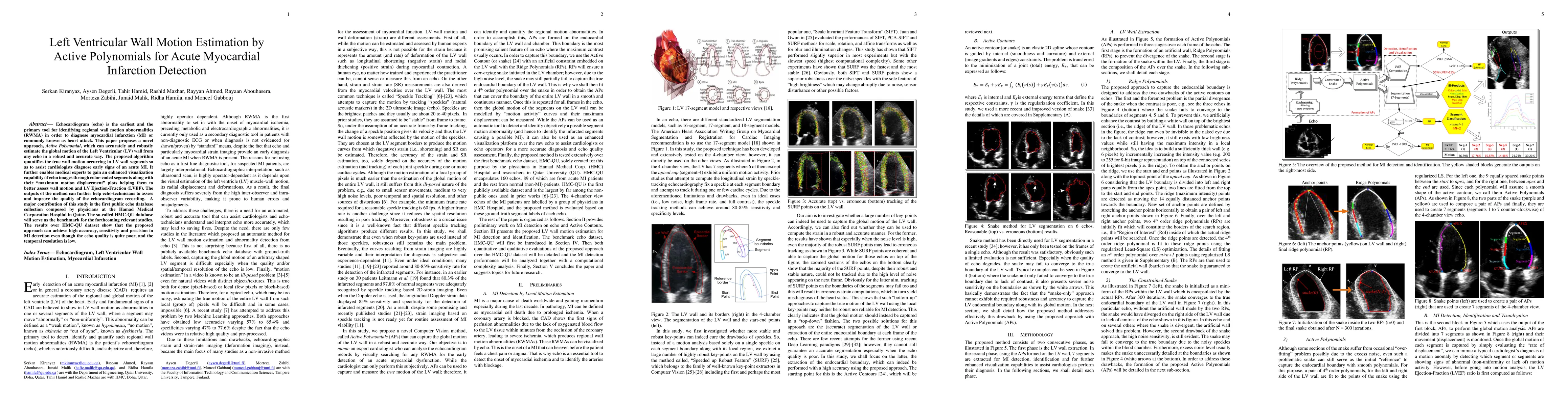 Echocardiogram (echo) is the earliest and the primary tool for identifying regional wall motion abnormalities (RWMA) in order to diagnose myocardial infarction (MI) or commonly known as heart attack. This paper proposes a novel approach, Active Polynomials, which can accurately and robustly estimate the global motion of the Left Ventricular (LV) wall from any echo in a robust and accurate way. The proposed algorithm quantifies the true wall motion occurring in LV wall segments so as to assist cardiologists diagnose early signs of an acute MI. It further enables medical experts to gain an enhanced visualization capability of echo images through color-coded segments along with their "maximum motion displacement" plots helping them to better assess wall motion and LV Ejection-Fraction (LVEF). The outputs of the method can further help echo-technicians to assess and improve the quality of the echocardiogram recording. A major contribution of this study is the first public echo database collection composed by physicians at the Hamad Medical Corporation Hospital in Qatar. The so-called HMC-QU database will serve as the benchmark for the forthcoming relevant studies. The results over the HMC-QU dataset show that the proposed approach can achieve high accuracy, sensitivity and precision in MI detection even though the echo quality is quite poor, and the temporal resolution is low.