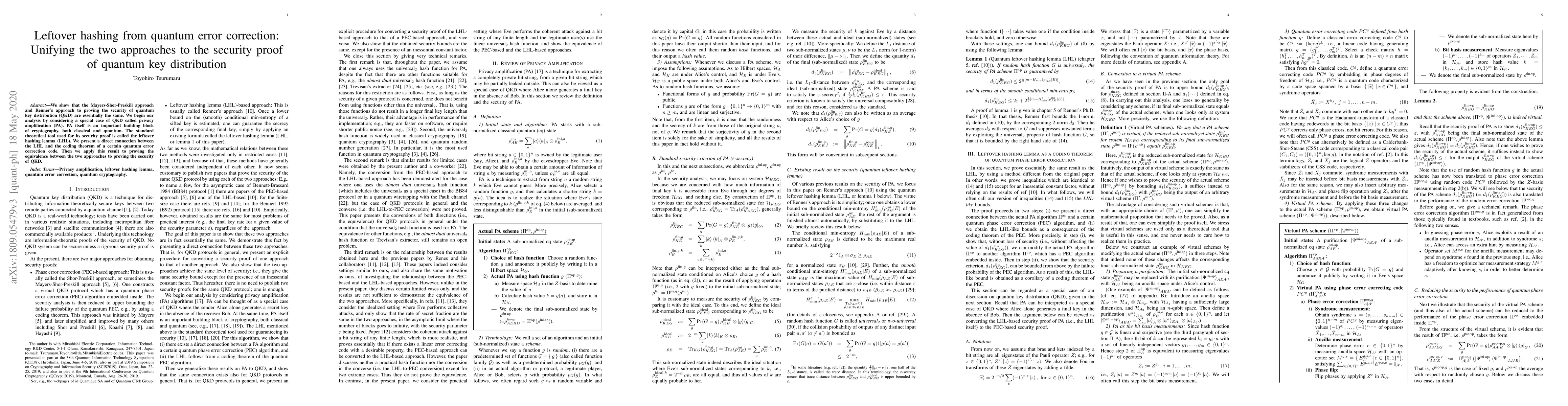 This paper demonstrates the equivalence between Mayers-Shor-Preskill and Renner's approaches to proving the security of quantum key distribution (QKD). It establishes a connection between the leftover hashing lemma and the coding theorem of a quantum error correction code, thereby unifying the two security proof methods.