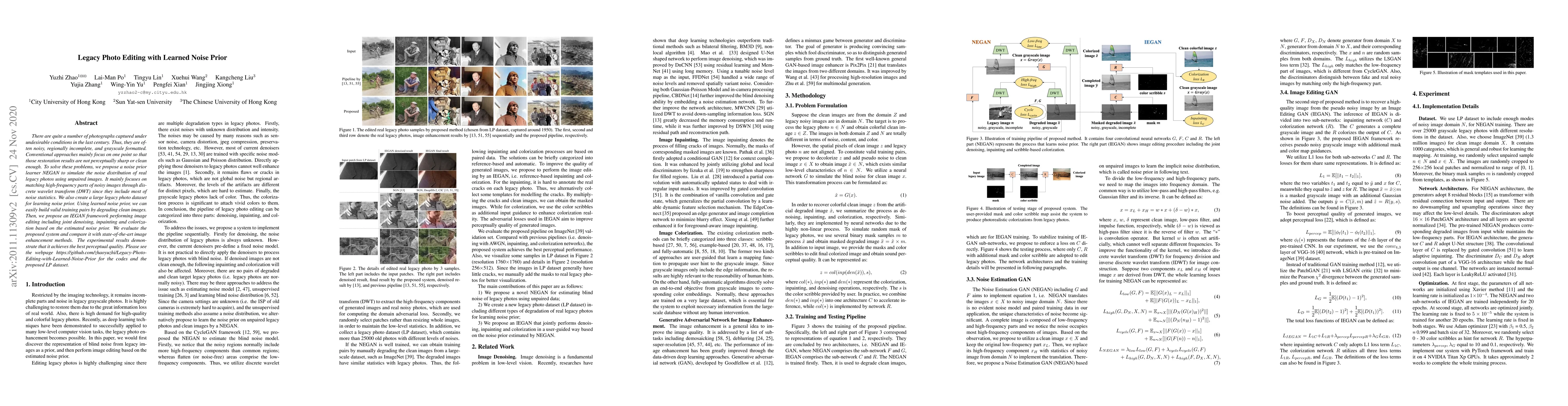 This paper proposes a new approach to editing legacy photos, which are often noisy and incomplete, using learned noise prior, achieving the best perceptual quality in image enhancement.