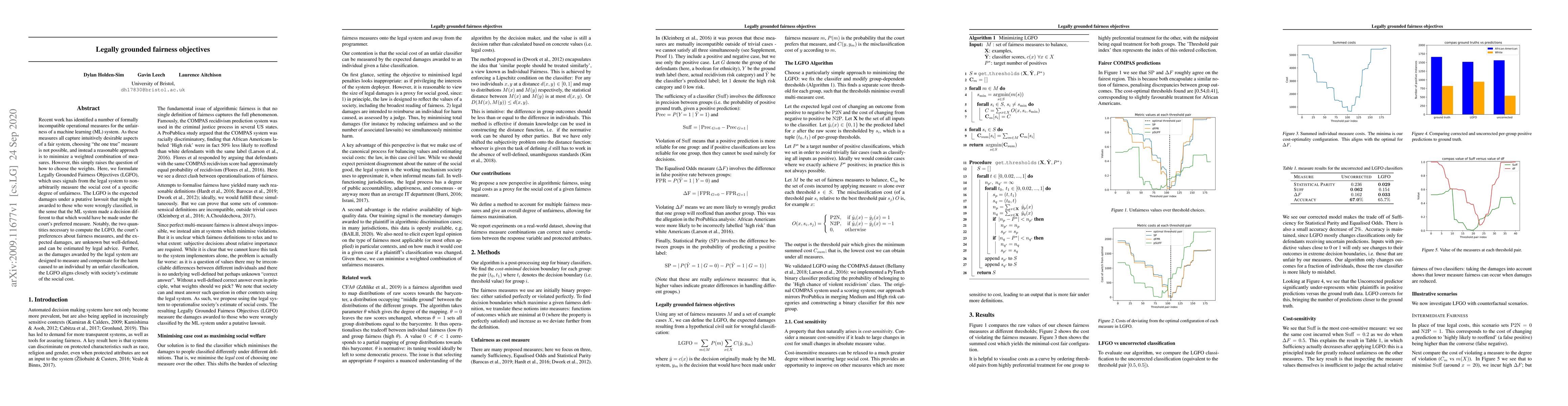 Recent work has identified a number of formally incompatible operational measures for the unfairness of a machine learning (ML) system. As these measures all capture intuitively desirable aspects of a fair system, choosing "the one true" measure is not possible, and instead a reasonable approach is to minimize a weighted combination of measures. However, this simply raises the question of how to choose the weights. Here, we formulate Legally Grounded Fairness Objectives (LGFO), which uses signals from the legal system to non-arbitrarily measure the social cost of a specific degree of unfairness. The LGFO is the expected damages under a putative lawsuit that might be awarded to those who were wrongly classified, in the sense that the ML system made a decision different to that which would have be made under the court's preferred measure. Notably, the two quantities necessary to compute the LGFO, the court's preferences about fairness measures, and the expected damages, are unknown but well-defined, and can be estimated by legal advice. Further, as the damages awarded by the legal system are designed to measure and compensate for the harm caused to an individual by an unfair classification, the LGFO aligns closely with society's estimate of the social cost.