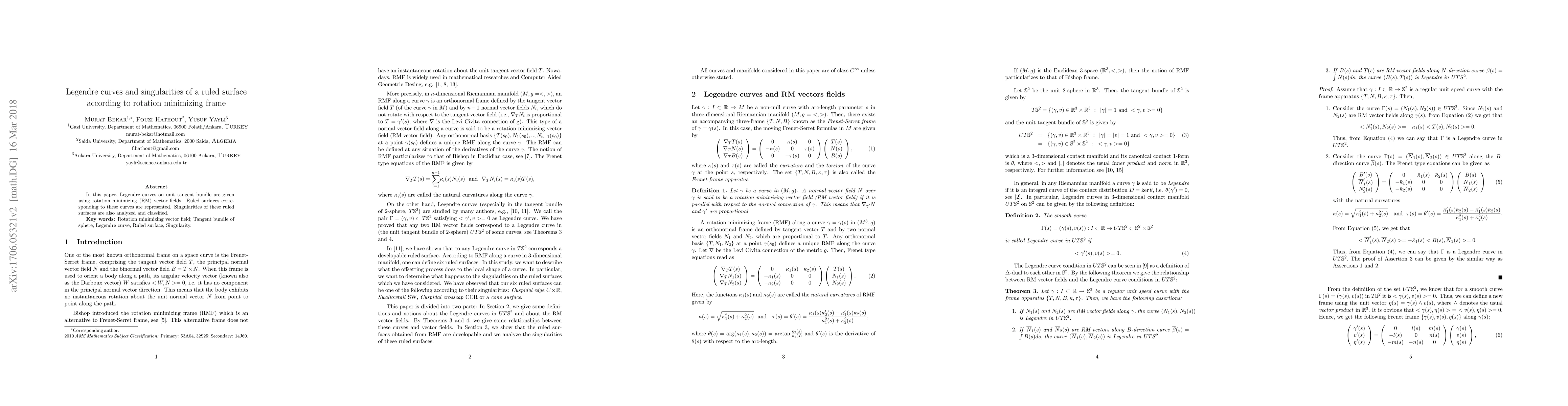 This paper investigates Legendre curves on the unit tangent bundle through rotation minimizing vector fields and represents the corresponding ruled surfaces. It further analyzes and classifies the singularities inherent in these ruled surfaces.