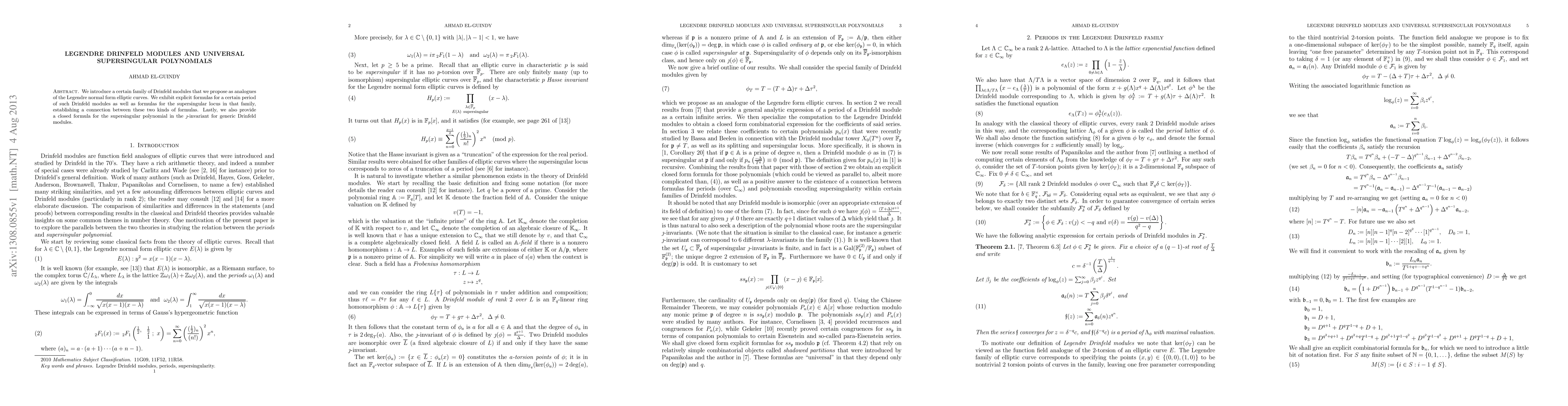 This paper introduces a family of Drinfeld modules analogous to Legendre normal form elliptic curves, provides explicit period formulas, and establishes connections between these periods and the supersingular locus. It also gives a closed formula for the supersingular polynomial in the $\jmath$-invariant for generic Drinfeld modules.