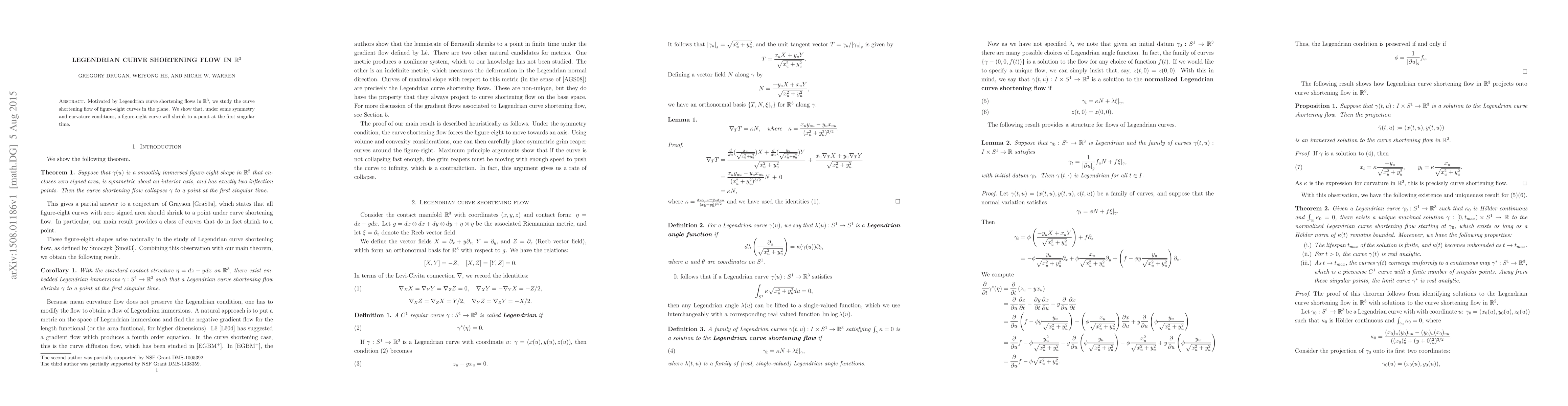 Summary: This paper investigates the curve shortening flow of figure-eight curves in the plane, demonstrating that under specific symmetry and curvature conditions, such curves will converge to a point at the first singular time, inspired by Legendrian curve shortening flows in $\mathbb{R}^{3}$.
