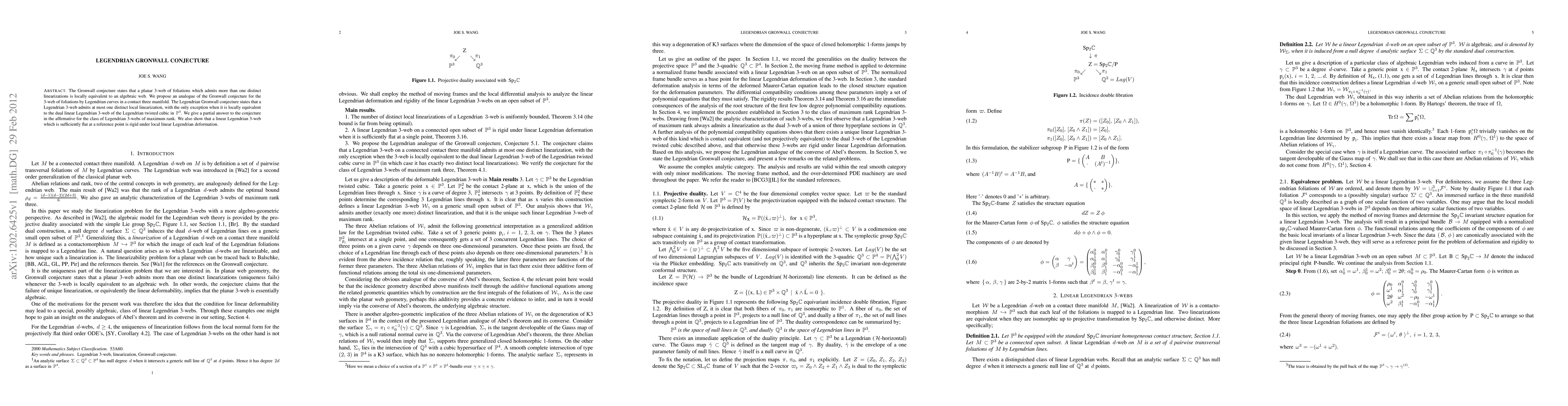 The Gronwall conjecture states that a planar 3-web of foliations which admits more than one distinct linearizations is locally equivalent to an algebraic web. We propose an analogue of the Gronwall conjecture for the 3-web of foliations by Legendrian curves in a contact three manifold. The Legendrian Gronwall conjecture states that a Legendrian 3-web admits at most one distinct local linearization, with the only exception when it is locally equivalent to the dual linear Legendrian 3-web of the Legendrian twisted cubic in $\,\PP^3$. We give a partial answer to the conjecture in the affirmative for the class of Legendrian 3-webs of maximum rank. We also show that a linear Legendrian 3-web which is sufficiently flat at a reference point is rigid under local linear Legendrian deformation.