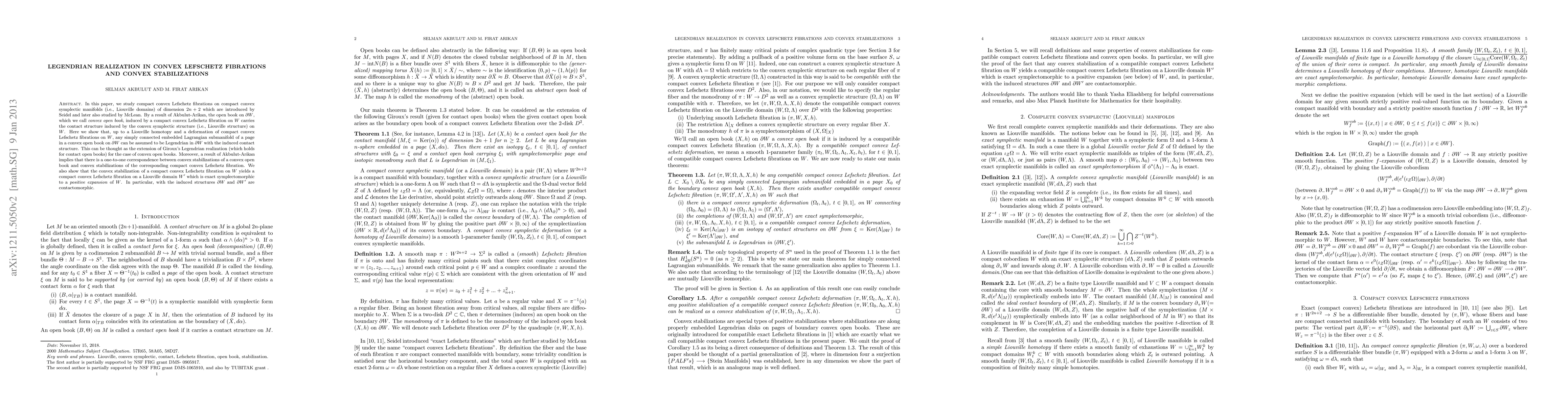 The paper introduces methods for realizing Legendrian structures in convex open books and establishes a correspondence between convex stabilizations of open books and Lefschetz fibrations.