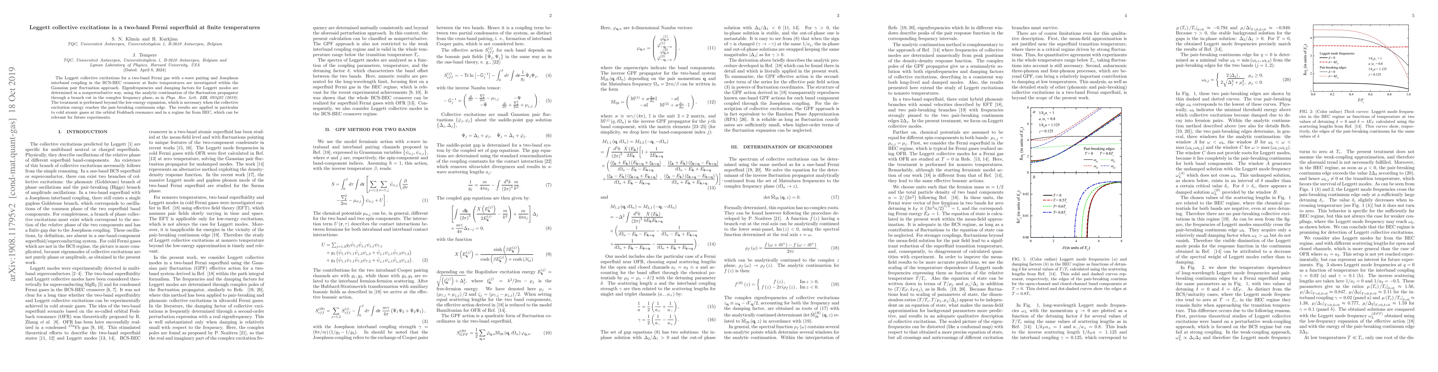 The Leggett collective excitations for a two-band Fermi gas with s-wave pairing and Josephson interband coupling in the BCS-BEC crossover at finite temperatures are investigated within the Gaussian pair fluctuation approach. Eigenfrequencies and damping factors for Leggett modes are determined in a nonperturbative way, using the analytic continuation of the fluctuation propagator through a branch cut in the complex frequency plane, as in Phys. Rev. Lett. 122, 093403 (2019). The treatment is performed beyond the low-energy expansion, which is necessary when the collective excitation energy reaches the pair-breaking continuum edge. The results are applied in particular to cold atomic gases at the orbital Feshbach resonance and in a regime far from BEC, which can be relevant for future experiments.
