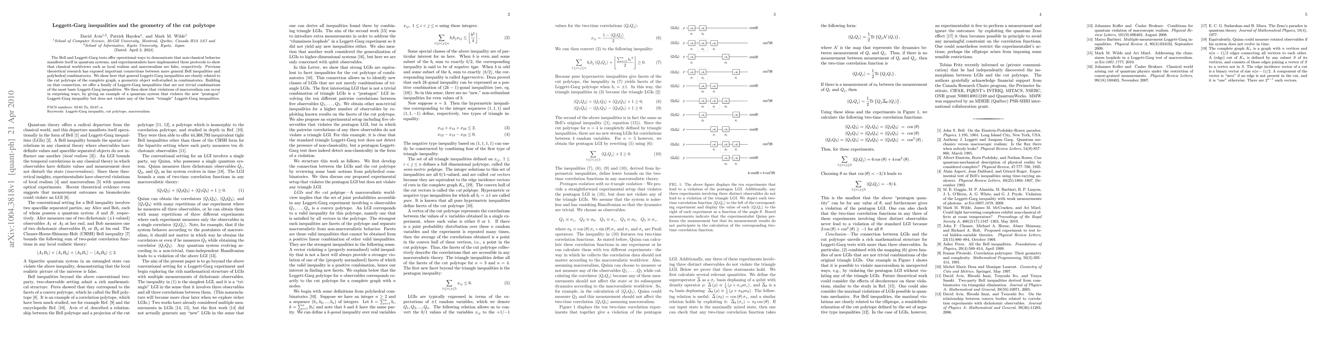 The Bell and Leggett-Garg tests offer operational ways to demonstrate that non-classical behavior manifests itself in quantum systems, and experimentalists have implemented these protocols to show that classical worldviews such as local realism and macrorealism are false, respectively. Previous theoretical research has exposed important connections between more general Bell inequalities and polyhedral combinatorics. We show here that general Leggett-Garg inequalities are closely related to the cut polytope of the complete graph, a geometric object well-studied in combinatorics. Building on that connection, we offer a family of Leggett-Garg inequalities that are not trivial combinations of the most basic Leggett-Garg inequalities. We then show that violations of macrorealism can occur in surprising ways, by giving an example of a quantum system that violates the new "pentagon" Leggett-Garg inequality but does not violate any of the basic "triangle" Leggett-Garg inequalities.